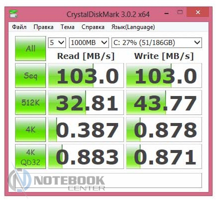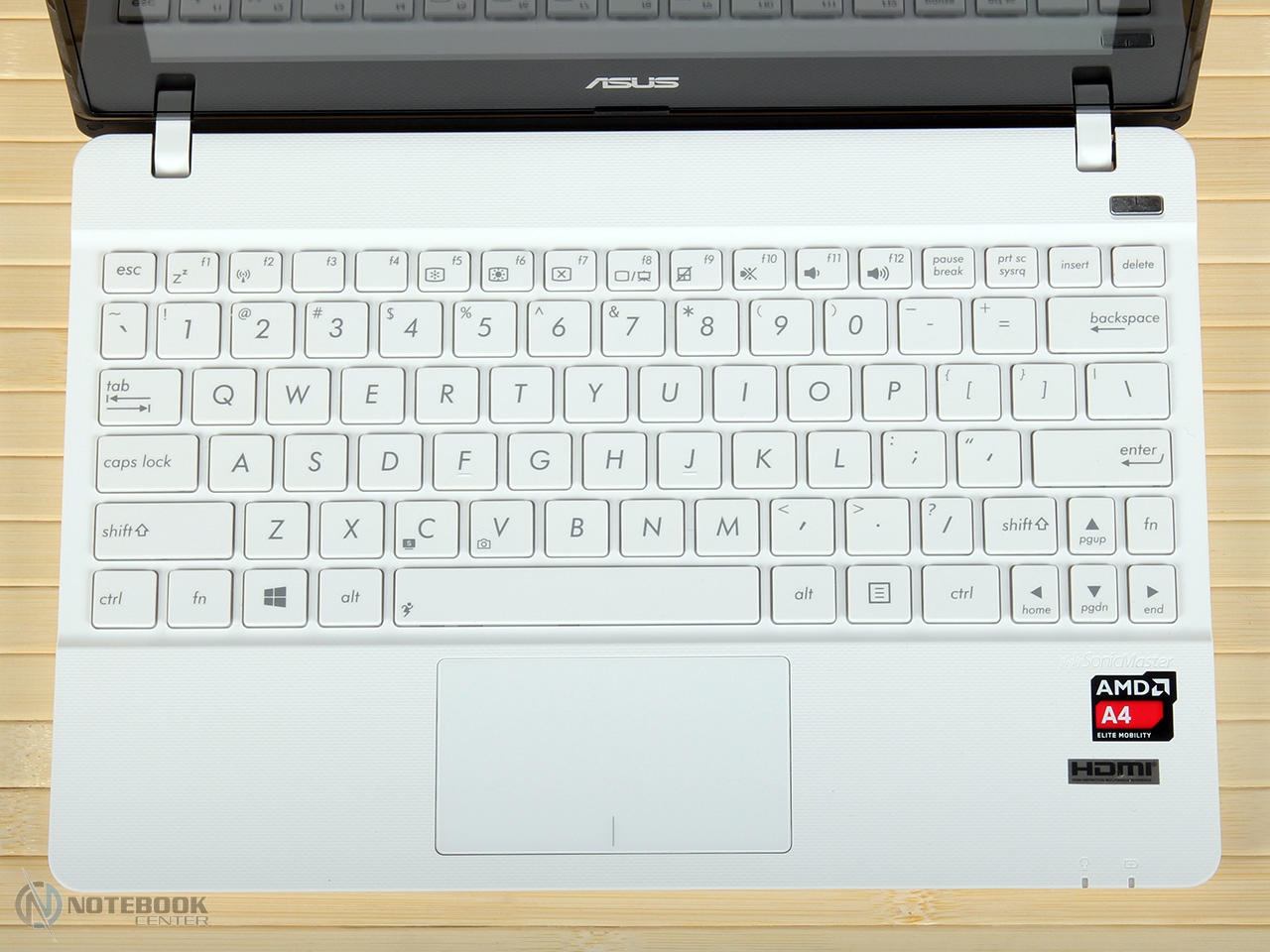Комплект поставкиВ небольшую коробку, кроме самого гаджета, поместили брошюру по эксплуатации и небольшое зарядное устройство. ДизайнПри покупке данного ноутбука, первое, с чем столкнется пользователь – это многообразие цветовых вариаций корпуса. ASUS X102BA доступен в продаже в четырех цветах: традиционных белом и черном, а также розовом и синем. К нам на тестирование приехал лэптоп белого цвета, и на фоне большинства серо-черных девайсов, он внес в некоторой степени свежую струю. ![]() Ноутбук довольно тяжелый, ведь его вес оставляет 1.13 кг, и хотя в цифрах это немного, в руках он весьма ощутим. Корпус устройства полностью выполнен из пластика. Панель крышки и рабочая зона сделаны из рифленого материала, внешне очень напоминающего поверхность, собранную из тысячи тысяч миниатюрных кирпичиков, подложка клавиатуры – гладкий глянцевый пластик, днище шероховатое, очень приятное на ощупь, что, вероятно, предупреждает даже малейшую опасность скольжения. Ровно в центре крышки производитель разместил свой традиционный логотип, который довольно ярко выделяется на белой поверхности. К слову сказать, несмотря на то, что белый цвет в принципе непрактичен, в данном ноутбуке он выигрывает вдвойне – отлично маскирует отпечатки пальцев и добавляет свою индивидуальность. ![]() Также нужно отдать должное и другим не менее важным моментам – крышка открывается туговато, но при этом петли достаточно жесткие и надежно фиксируют выбранное положение, отсутствуют скрипы и зазоры в корпусе, максимальный угол раскрытия дисплея вполне комфортный. ![]() На днище можно найти четыре резиновые ножки, два динамика, решетку вентиляции для охлаждения внутренних компонентов, и наклейку с краткими данными о девайсе. Под цельной крышкой скрываются внутренние компоненты и встроенная батарея, отдельных отсеков здесь нет. Кстати, за счет несъемной батареи, днище получилось не плоским, а клиновидным, поэтому ASUS X102BA очень удобно держать в руках либо ставить на колени. Габариты устройства довольно компактные – 266х185х23.3-29 мм. ![]() Дисплей, звук и веб-камераЛэптоп ASUS X102BA оснащен 10.1-дюймовым сенсорным экраном с разрешением 1366х768 пикселей, который обрамлен рамкой черного цвета и защищен прочным стеклом. ![]() Широкоформатный дисплей формата 16:9 радует широкими углами обзора, особенно горизонтальными. И хотя в процессе работы ноутбук все же придется подстраивать под определенный угол просмотра, ситуация с инверсией изображения вряд ли возникнет. Тачскрин отличается высокой чувствительностью и работоспособностью, он распознает контактную поверхность размером всего 5 мм. ![]() Максимального уровня яркости вполне достаточно для организации продуктивной эксплуатации устройства даже вне помещения. Глянцевое покрытие дисплея, конечно, несколько ухудшает восприятие изображения на дисплее, добавляя тусклости и бликов, однако в помещении данный момент малозаметен. Кроме того, пользователь, несомненно, оценит четкую и контрастную картинку при просмотре видео или серфинга на просторах интернета. Кстати, предустановленное программное обеспечение ASUS Splendid позволяет сделать изображение на экране более реалистичным, выбрав один из четырех режимов – Normal, Theater, Vivid и ручные настройки Manual. ![]() Акустическая система ASUS SonicMaster справляется со своими обязанностями весьма неплохо. Два динами