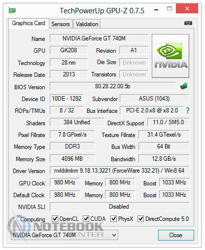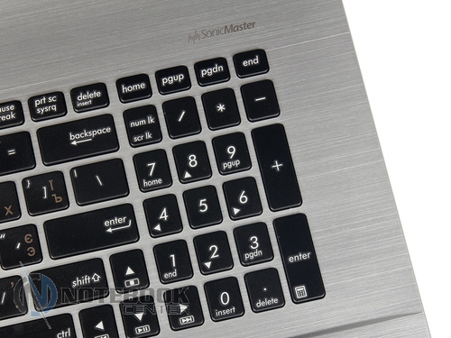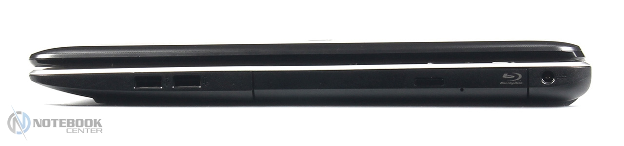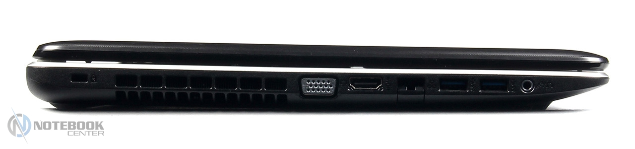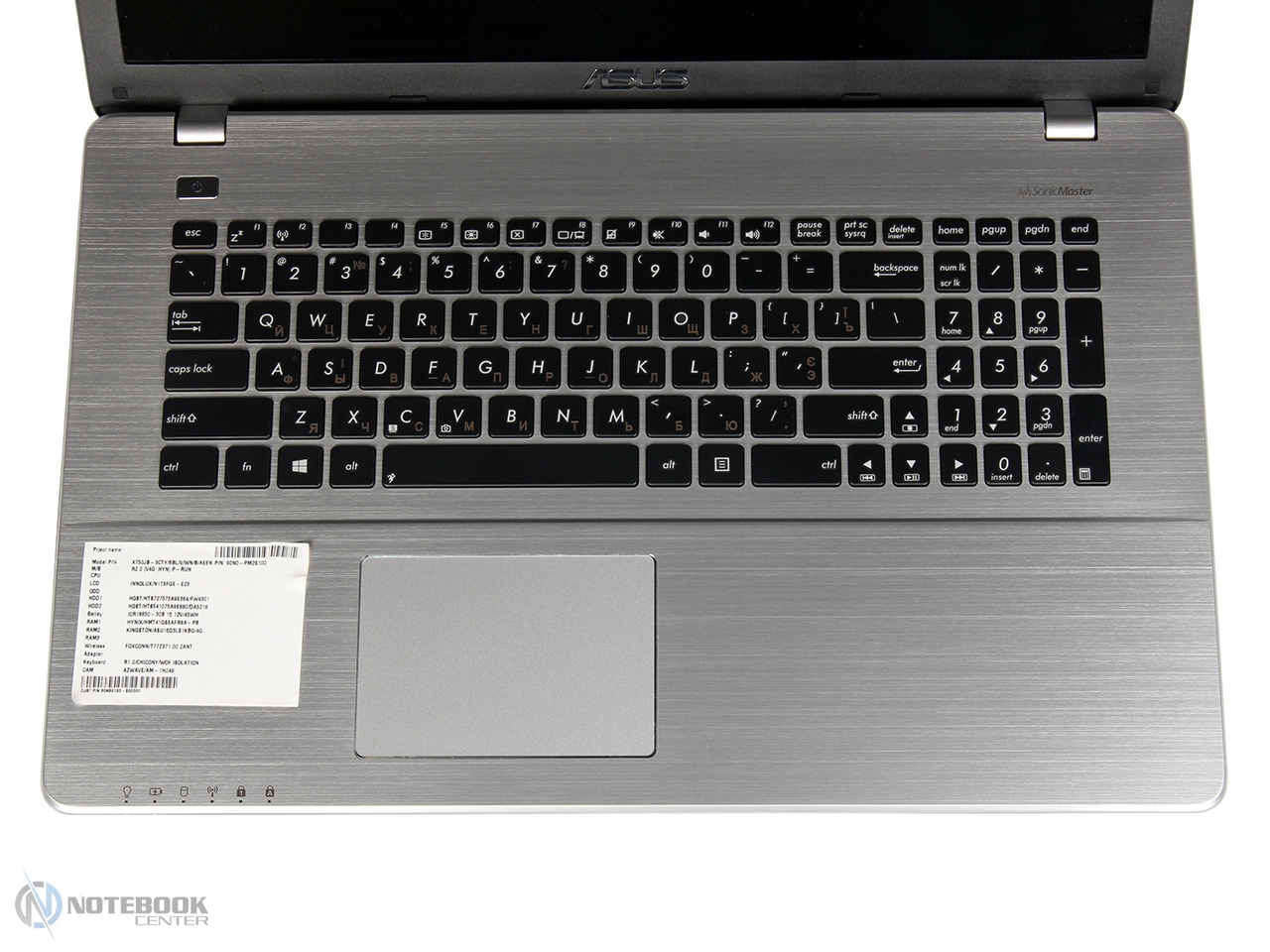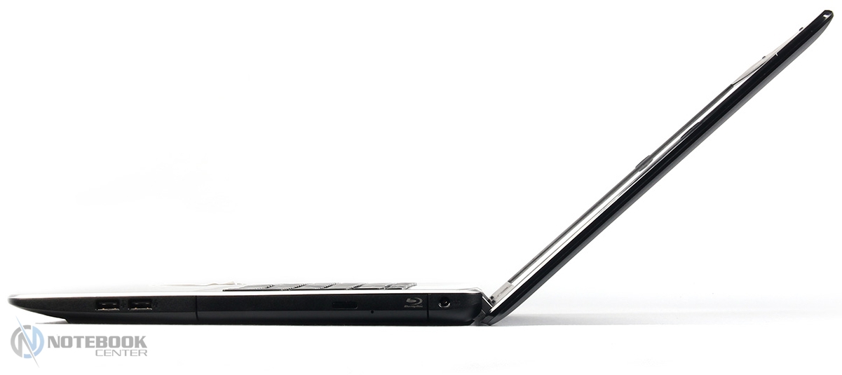 ДизайнНоутбук достаточно привлекательный. Крышка имеет темно-серую расцветку, на которой выделяется серебристый фирменный логотип ASUS. Прикосновение к ней создает приятные тактильные ощущения, благодаря объемному концентрическому рисунку, в отличие от днища, которое является просто шероховатым. Возможно, из-за этого устройство практически не скользит в руках. Кстати, лэптоп имеет в большей степени классическую форму, при этом углы корпуса немного закруглены, а тонкая рамка по периметру крышки глянцевая и гладкая. ![]() Когда ноутбук закрыт, внимание привлекает светло-серебристая окантовка. Она не только является частью интерьерного оформления, но и визуально разделяет основание и крышку ноутбука. Интересно, что два контрастных тона отлично гармонируют друг с другом. Однако за счет светлой части габариты устройства кажутся немного больше, чем есть на самом деле. Вообще, для 17-дюймового девайса ASUS X750JB выглядит не слишком громоздким, обладая корпусом длиной 415 мм и глубиной 312 мм. Вместе с тем, толщина ноутбука также не особо велика и составляет 27 мм. ![]() Петли, удерживающие дисплей, выглядят монолитными и очень надежными. Они настолько тугие, что открыть одной рукой устройство не получится, впрочем, в этом есть существенный плюс – впоследствии дисплей практически не раскачивается. ![]() Кстати, максимальный угол раскрытия составляет 135°, а при закрытии крышки автодоводка срабатывает уже на 15 градусах. ![]() На рабочей зоне полностью отсутствует глянец. Она выполнена из шлифованного алюминия, что создает определенный стиль и даже добавляет элегантности. На таком фоне особо ярко выделяются черные клавиши, блестящая кнопка включения ноутбука, а также зона тачпада, выполненная на несколько тонов светлее подложки и площадки для запястий. Рамка вокруг дисплея выполнена из пластика, она матовая и слегка шероховатая. Собственно говоря, по прочности он достаточно жесткий, при нажатии совсем не скрипит, правда, заметен небольшой люфт. К сожалению, менее крепкой оказалась крышка, т.к. при надавливании в центре она заметно прогибается. ![]() Довольно необычным сделано днище ASUS X750JB. В большинстве случаев оно плоское, а здесь видно два крупных выступа. Один – в зоне аккумуляторной батареи, второй – ближе к передней грани. Это не портит внешний вид корпуса, а даже способствует большей устойчивости при использовании ноутбука на столе. Кроме этого, внизу есть четыре прямоугольные резиновые ножки, а также ряд вентиляционных отверстий для вывода воздуха. ![]() Любопытно, что кардридер расположился не на грани ноутбука, как мы привыкли видеть, а на днище, точнее на его переднем скосе. Увы, для доступа к модулям памяти и другим внутренним компонентам не предусмотрен отдельный отсек, поэтому добраться можно только отвинтив не менее дюжины винтиков и полностью сняв крышку. ![]() Несмотря на то, что ноутбук выглядит достаточно тонким, использовать его лучше стационарно дома или в офисе. Ведь к относительно небольшому весу ASUS X750JB в 2.8 кг добавится еще и блок питания, который весит более 400 граммов. Дисплей, звук, веб-камераЭтот ноутбук оснащается глянцевым 17.3-дюймовым дисплеем N173FGE-E23 со светодиодной подсветкой и разрешением 1600х900 пикселей. Большие габариты экрана и соотношение сторон 16:9 позволяет комфортно смотреть фильмы, свободно размещать несколько окон п