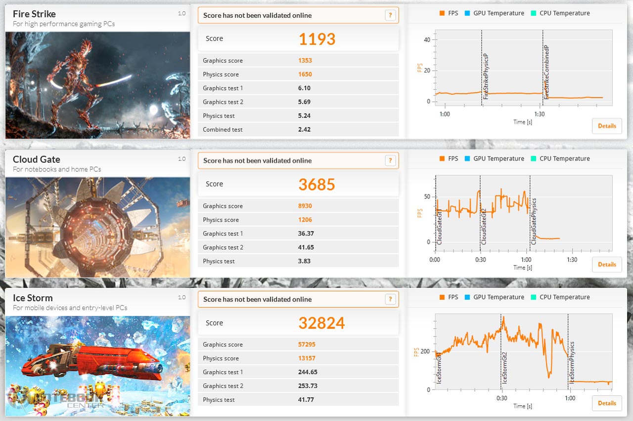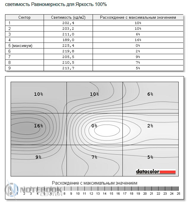 Более часа мы нагружали лэптоп с помощью приложения FurMark и стресс-теста AIDA. Впоследствии замеры показали, что самой горячей точкой оказалась центральная часть днища и область клавиатуры, где температура поднялась до 42.3°C и 49.8°C. Показатели в других зонах корпуса были не такими высокими, например, правая сторона рабочей площадки нагрелась совсем немного, а разница между простоем не превысила 1-2 градуса Цельсия. Впрочем, в реальной жизни ситуация, когда начинка ноутбука подвергается такой нагрузке, возможна не так уж часто, особенно если вы не планируется на нем играть.