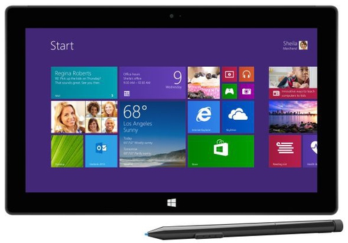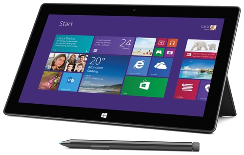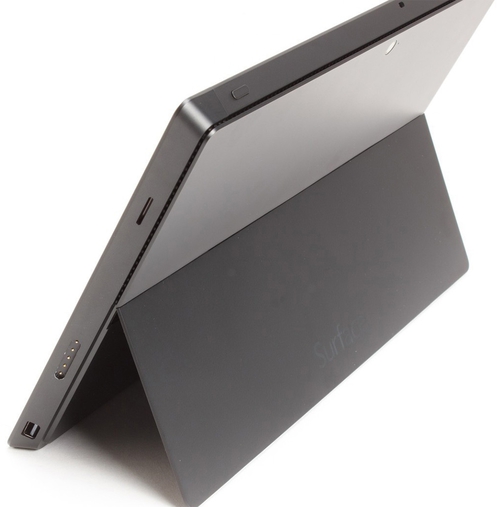 Комплект поставкиНе смотря на совместимость с большим разнообразием аксессуаров, которые, кстати, были представлены вместе с планшетами, в комплект поставки Surface Pro 2 не вошли ни клавиатура, ни док-станция – все это нужно будет докупать отдельно. Итого, в большой коробке можно найти только сам планшет, стилус, зарядное устройство и набор необходимой документации. ДизайнВнешних модификаций планшет, по сравнению с предшественником, практически не претерпел, разве что изменились вес и самые мелкие детали. Корпус по-прежнему изготовлен из магниевого сплава VaporMg, представляющего собой более надежное покрытие, чем пластик, однако это не является препятствием для отпечатков пальцев – они в изобилии сохраняются на поверхности устройства. Общий дизайн планшета полностью соответствует предыдущему Surface Pro: такой же строгий стиль исполнения, резко очерченные линии и углы, просматривается даже доля массивности, что в особенности оттеняет однотонный цвет корпуса, так называемый, темный титан. ![]() Также, как и старая модель, новый Surface Pro 2 оснащен откидывающейся ножкой, которая является неотъемлемой частью задней панели. Однако теперь, наверняка учтя ошибку с первым поколением, производитель обеспечил ее фиксирование в двух плоскостях, что, естественно, является более мудрым решением. Но, как показывает практика, это очень удобно при использовании планшета на твердой поверхности, в случае же, если планшет юзается на коленях, целесообразность наличия откидывающейся ножки вызывает сомнения, так как опоры практически не дает. Тыловая поверхность корпуса полностью пуста, кроме глазка задней веб-камеры и надписи «Surface» на подставке. Между прочим, это является одним из немногочисленных отличительных внешних факторов данной модели от предыдущего поколения, так как раньше там был крупный значок Windows. ![]() 10.6-дюймовый планшет Surface Pro 2 представляет собой достаточно тяжелый мобильный гаджет – его вес 907 граммов, габариты корпуса 275х173х14 миллиметров. Что ж, очевидно, держать его в руках на весу станет проблематичным занятием для многих людей. Но всегда приходится чем-то жертвовать, и в данном случае прочный магниевый корпус, отличная сборка и полноценная ультрабучная комплектация сделали свое дело. Дисплей, звук и веб-камераНовый планшет от Microsoft получил 10.6-дюймовый дисплей ClearType, с высокой разрешающей способностью 1920x1080 пикселей. Экран покрыт прочным защитным стеклом, сенсор работает прекрасно, а поддержка мультитач обеспечивает распознавание жестов прокручивания или масштабирования. В общем, все действия идентифицируются моментально и выполняются корректно. Кроме того, для более комфортной и производительной работы в комплекте поставки предусмотрен стилус, наличие которого не только позволяет лучше ориентироваться в работе, но и редактировать изображения, производить рукописные вводы и прочее. Он высокоточен и работает даже с крохотными кнопками и иконками. Для того чтобы стилус находился всегда под рукой, он оборудован магнитной площадкой, посредством которой крепится к магнитному разъему питания, то есть отдельных элементов фиксации для него на корпусе планшета не предусмотрено. ![]() Но вернемся к характеристикам дисплея. Из-за глянцевого покрытия при использовании устройства вне помещения экран будет заметно бликовать, изображени