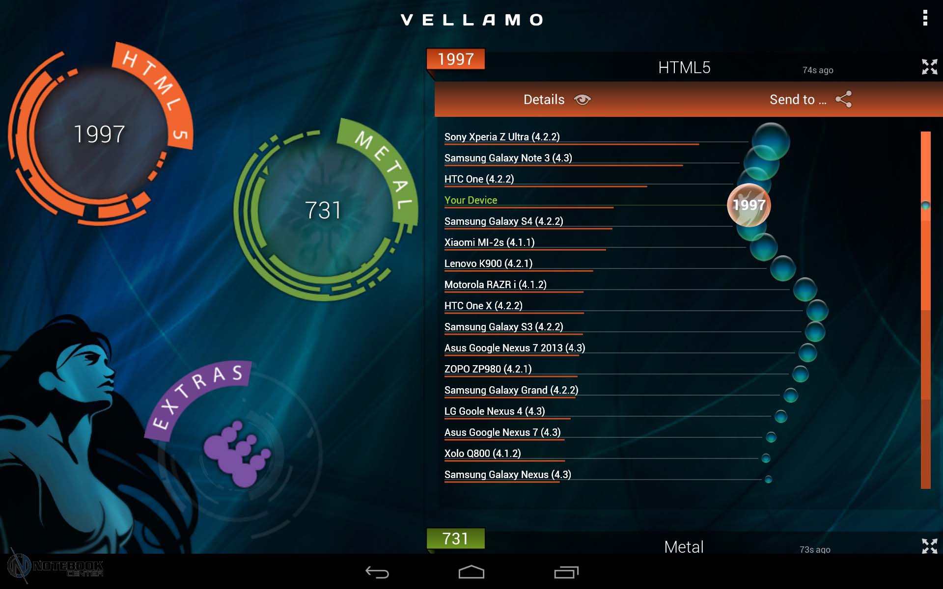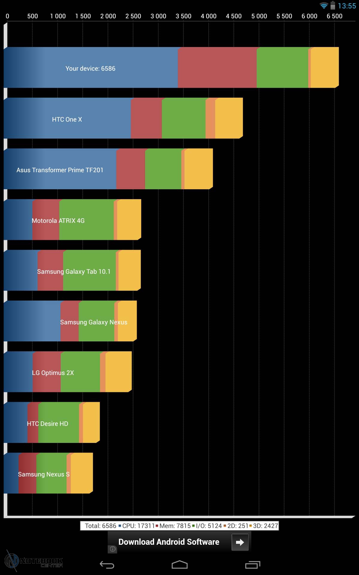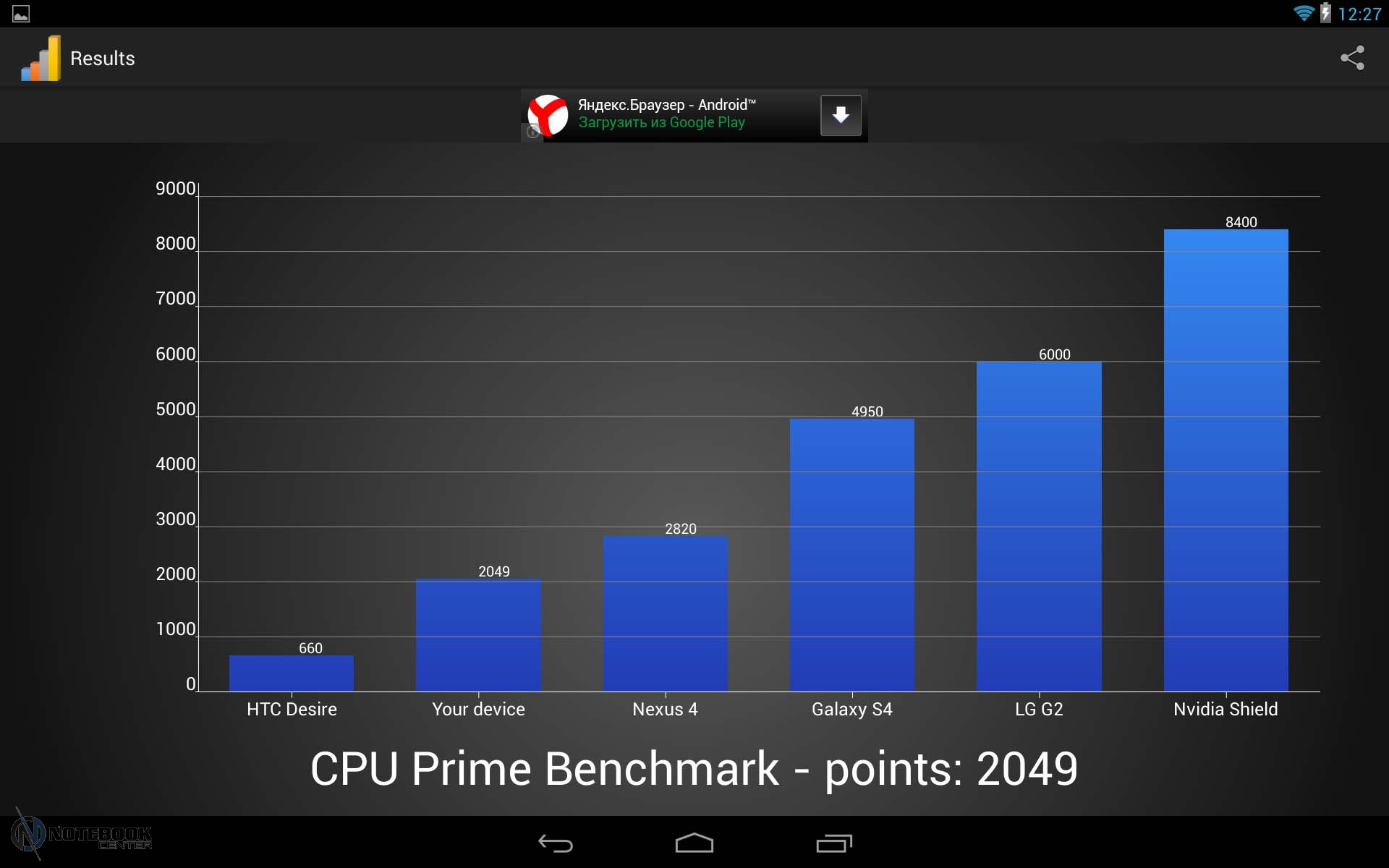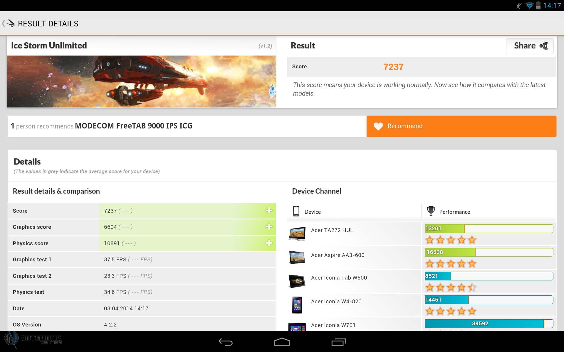 Комплект поставкиКомплект поставки совершенно прост и незамысловат: сам герой обзора, то есть, планшет, пара книжечек с информацией о девайсе, переходник Micro-USB/USB, зарядное устройство с проводом USB и скрепка для изъятия карты microSD. ![]() ДизайнПланшет выполнен в корпусе белого цвета. Передняя и задняя панель покрыты прозрачным пластиком, и создается впечатление, что гаджет стеклянный. Это играет не только эстетическую роль, но и весьма активно скрывает неприглядные отпечатки пальцев. ![]() Боковые грани выполнены из алюминия, они серебристого цвета с декоративной черной полоской по бокам, которая, судя по всему, должна разбавить общий светлый фон планшета. ![]() Спинка устройства также не отличается многообразием элементов декора – сплошная глянцевая панель с глазком веб-камеры в правом верхнем углу, краткой информацией и зеркальным логотипом Intel Inside. ![]() Благодаря форме и малому весу, FreeTAB 9000 IPS ICG очень комфортно держать в руках, более того, он умеренно скользкий, так что пользоваться на весу будет удобно. Кстати, габариты устройства составляют 236х150х9 мм, вес всего лишь 468 г. ![]() Дисплей, звук и веб-камераНа вооружении у FreeTAB 9000 IPS ICG стоит 8.9-дюймовый дисплей с разрешающей способностью 1920х1200 пикселей. Устройство обладает очень неплохим экраном, при чем это касается всех интересующих параметров – цветопередачи, углов обзора, чувствительности, отзывчивости и др. Углы обзора широкие, что горизонтальные, что вертикальные, благодаря использованию матрицы IPS. Нельзя сказать, что цвета идеально яркие и сочные, однако смотреть, например, фильмы, на таком экране приятно, да и контрастность находится на должном уровне. ![]() Яркость необходимо регулировать самостоятельно, автонастройки здесь нет. Максимального уровня более чем достаточно, и даже на солнце пользоваться планшетом очень удобно. ![]() ![]() С помощью программы MultiTouch Tester было установлено, что планшет распознает управление сразу пятью пальцами. Высокая чувствительность дисплея так же, как и отзывчивость, делают пользование еще больше комфортным и результативным. ![]() Читалка из FreeTAB 9000 IPS ICG получается просто отличная, по умолчанию предусмотрена программа Moon + Reader. ![]() Серфить интернет придется, скорее всего, при постоянном масштабировании страниц, так как достаточно высокое разрешение экрана делает шрифт мелковатым. ![]() Что касается акустики, то планшет, безусловно, радует. Два динамика расположены на боковых гранях корпуса, если использовать планшет в альбомной ориентации. Вот только если держать планшет в руках, то стоит обратить внимание, что его надо перевернуть так, чтобы не перекрывать решетки, иначе звук может заметно приглушаться. Впрочем, звучит акустика очень громко, и сам звук оптимально сбалансирован по диапазону частот, и, между прочим, басов здесь в самый раз, что характерно далеко не всем современным таблеткам. ![]() В планшет установлено две веб-камеры: фронтальная имеет разрешение 2 Мп и используется для общения в Skype. ![]() ![]() А вот тыловая получила 5 Мп и автофокус. ![]() ![]() КлавиатураСенсорная клавиатура здесь стандартная, со средними по размеру клавишами и типичными для Android 4.2 функциями. Текст набирается быстро и комфортно, никаких претензий в этом отношении к планшету нет. ![]() ПроизводительностьMODECOM FreeTAB 9000 IPS ICG работает под управлением операционной системы Android 4.2.2 Jelly Bean. Здес