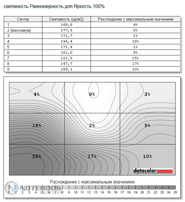 Комплект поставкиНоутбук поставляется с самыми привычными аксессуарами вроде батареи, блока питания с кабелем, набора документов (краткое руководство и инструкция по установке), загрузочного диска. Однако имеется здесь и одно необычное, но приятное дополнение в виде переходника VGA/Acer Converter Port. ![]() ДизайнС первых минут знакомства от данного ноутбука веет строгостью и солидностью. Крышка ноутбука выполнена из пластика, который, за счет продольной шлифовки, весьма умело маскируется под тонированный алюминий. На черной крышке одиноко смотрится серебристый логотип Acer. Это, в общем-то, и все – цельно, лаконично и минималистично. Сразу отметим, что на такой поверхности отпечатки пальцев видны довольно сильно, но убираются они легко. В то же время сама крышка прогибается совсем чуть-чуть и то лишь при существенном нажатии. ![]() Днище Acer Aspire V5-552G заметно отличается. Здесь уже использован совсем иной пластик, достаточно шероховатый, но от этого не менее приятный на ощупь. Ни единого отсека с обратной стороны нет, видны вентиляционные отверстия, решетки, под которыми спрятаны динамики, а также пять небольших резиновых ножек. По периметру и в середине нижней панели располагается не менее дюжины винтиков, в общем, сразу к внутренним компонентам не подберешься. ![]() Что касается рабочей поверхности, то здесь все выполнено в том же дизайне, что и крышка, с одним отличием, здесь использован алюминий. На темном фоне особо выделяются шершавые и на пару тонов светлее клавиши, а также хромированная окантовка тачпада. Интересно, что вся рабочая зона монолитная, а переход между подладонной поверхностью и клавиатурным блоком едва заметен. Здесь все достаточно прочное, но при нажатии на рабочую площадку немного продавливается тачпад. Если посмотреть на рамку дисплея, то она полностью вписывается в задумку дизайнеров: отсутствие глянца, аналогичный выбор цвета. В ее верхней части можно увидеть четыре небольших резиновых ножки, что позволит избежать ненужных касаний дисплея с клавишами, когда ноутбук будет закрыт. ![]() На качество сборки Acer Aspire V5 жаловаться не стоит: отсутствует люфт, зазоры, скрипы во время работы, все скомпоновано отлично. Петли, удерживающие дисплей, сравнительно тугие, но он все равно немного раскачивается. ![]() Кстати, ноутбук можно раскрыть до 145 градусов, что удобно для выполнения любой работы. ![]() Габариты устройства составляют 382х255х21 мм, что не выходит за рамки большинства 15.6-дюймовых устройств. Приятно порадовал вес ноутбука, не превышающий 2.1 кг, что позволит чаще его носить с собой. Дисплей, звук, веб-камераВ ноутбуке установлен дисплей AU Optronics B156XTN03.5, который выполнен по технологии Acer CineCrystal, добавляющей картинке большей глубины и детализации. Он имеет стандартный размер по диагонали 15.6 дюйма и разрешение 1366х768 пикселей, что типично для бюджетных устройств. ![]() Углы обзора экрана недостаточно широкие, поэтому при отклонении вам придется наблюдать небольшое снижение уровня яркости и ухудшение цветопередачи. Зато вы сможете оценить по достоинству матовую поверхность дисплея, которая обеспечит комфортную работу, просмотр видео или игр, ведь отражений на таком экране практически не будет. ![]() С помощью калибратора Datacolor Spyder4Elite мы смогли узнать уровень яркости и контрастности данного дисплея. Увы, эти показатели даже на максимуме