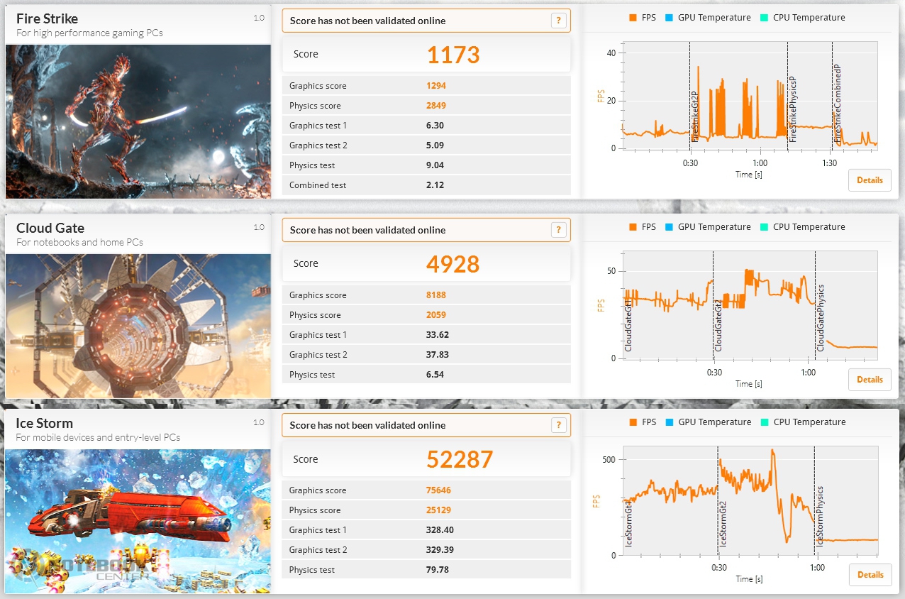 Зато после запуска FurMark и стресс-теста AIDA и их работы в течение часа панели ноутбука нагрелись заметно и неравномерно. Так, подладонная площадка осталась прохладной, а вот в центре клавиатуры температурный показатель достиг 41.2°C. Практически такая же ситуация наблюдалась и на днище, где результаты были небольшими за исключением 41°C в центре. В принципе, критической ситуации с нагревом здесь нет, более того, удерживая ноутбук на коленях, вряд ли вы почувствуете заметный дискомфорт.