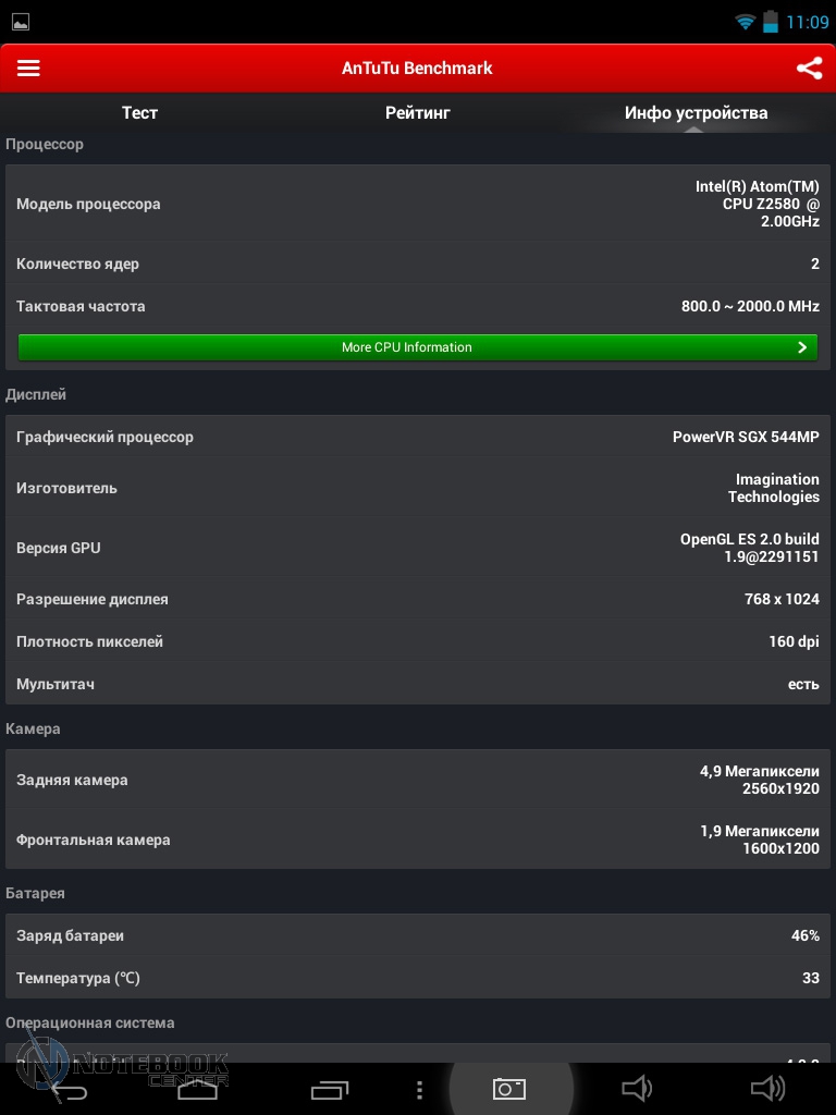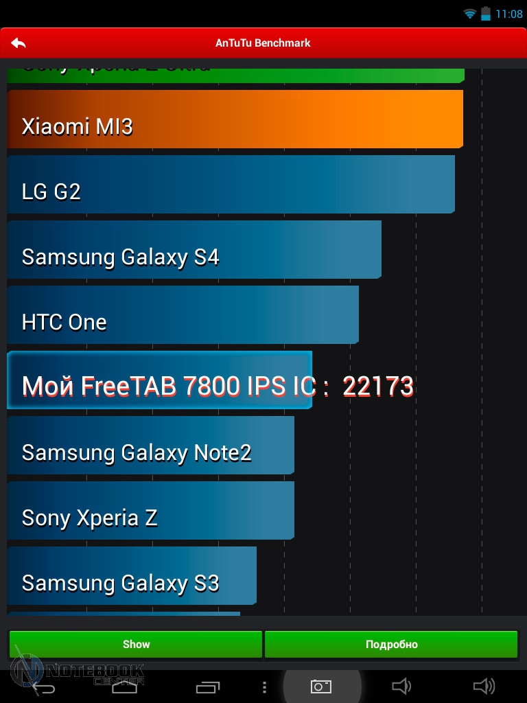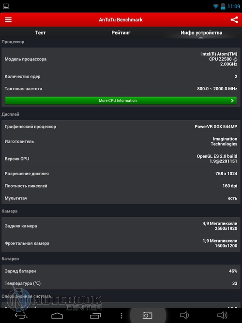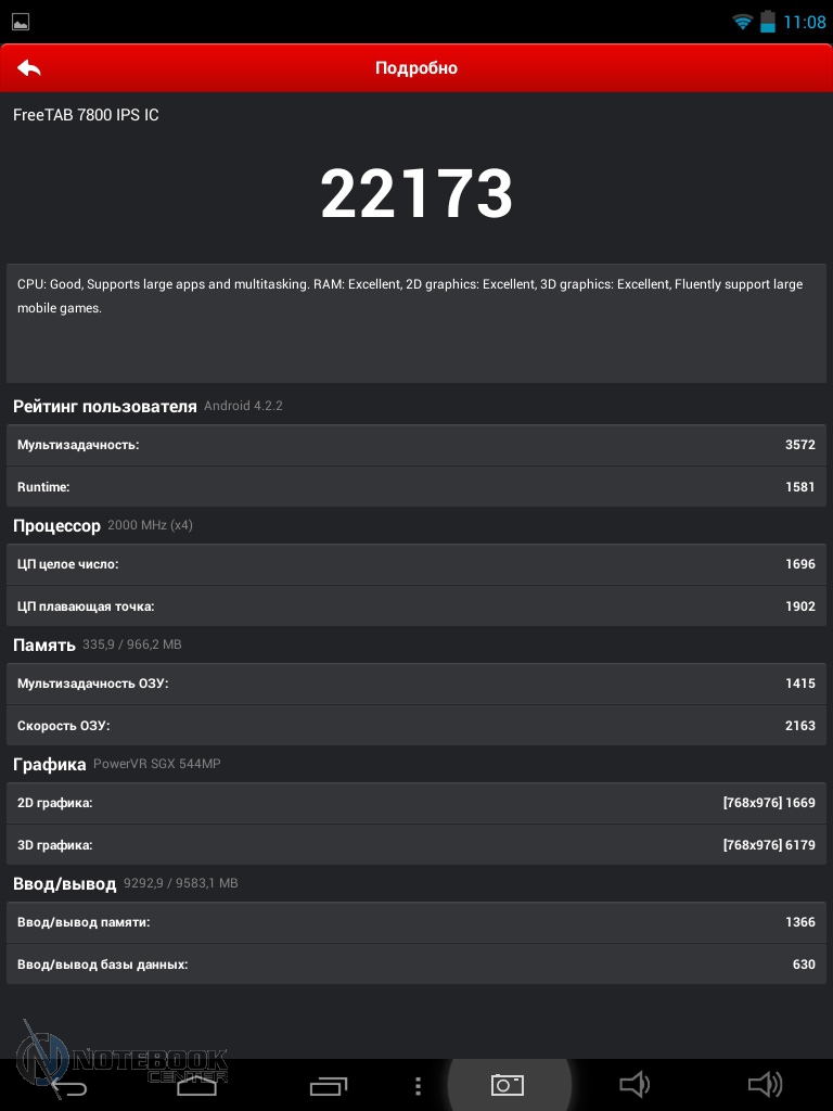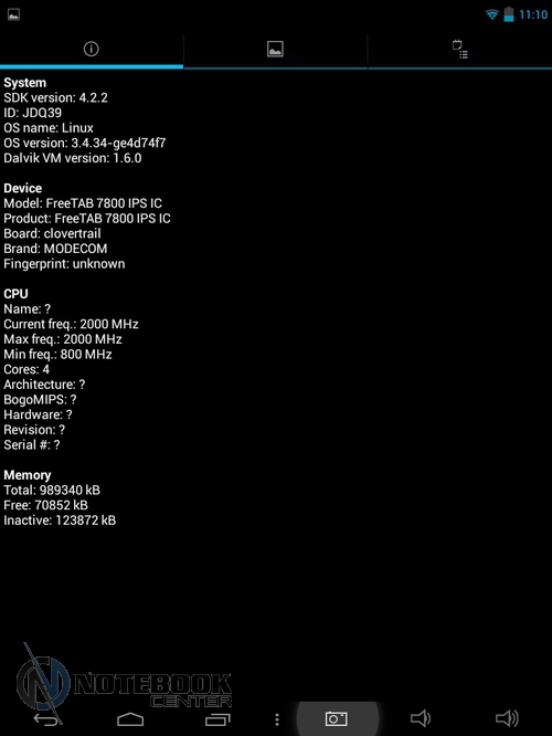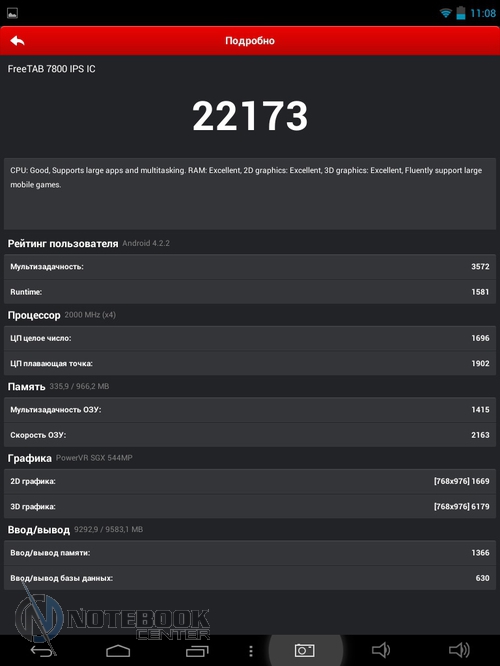 Комплект поставкиВ комплект поставки входит, непосредственно, сам планшет, блок питания, провод Micro-USB/USB, наушники и две книжечки-инструкции на разных языках, в том числе и на русском. ![]() ДизайнСтоит ли говорить, что у планшета MODECOM FreeTAB 7800 IPS IC поразительное сходство с известной таблеткой от Apple: та же алюминиевая серебристая крышка, белая рамка и закругленные углы. Почти 8-дюймовый дисплей полностью покрыт стеклом, а защитная пленка призвана уберечь от отпечатков пальцев. Ориентация планшета вертикальная, над верхней рамкой имеется глазок веб-камеры. ![]() Задняя панель алюминиевая, но на боковых торцах и верхней части крышки есть пластиковые вставки, которые не несут на себе какие-либо функции, а выполнены просто для красоты. В левом верхнем углу расположена тыловая веб-камера. А в нижней части крышки можно увидеть и два небольших динамика, скрытых под решетками. ![]() По ощущениям, планшет достаточно тяжелый, однако это приятная тяжесть, которая достигается за счет используемого алюминия. Он не только добавляет планшету больше солидности и прочности, но и комфортно прохладный для рук. Габариты гаджета составляют 21х14х0.9 см, а вес равен 327 г. Эти цифры достаточно типичны для 7-8-дюймовых планшетов. А чтобы вы не сомневались, приведем наглядные примеры: например, новинка Dell Venue 7 имеет вес 314 г, длину – 19.3 см, ширину – 11.8, а толщину – 0.9 см. Тот же Apple iPad mini располагает такими габаритами: 200x135x7 мм при весе в 308 г. ![]() Дисплей, звук и веб-камераВ MODECOM FreeTAB 7800 IPS IC имеется глянцевый дисплей с несколько нестандартной диагональю – 7.85 дюймов. Кстати, не зря при взгляде на этот планшет из памяти всплывает образ Apple iPad mini, ведь они схожи даже диагональю дисплея (7.9 дюймов у последнего). Матрица выполнена по технологии IPS, разрешение экрана составляет 1024x768 пикселей, соотношение сторон – 4:3, а плотность пикселей равна 162 ppi, опять же, как у первого поколения «яблочного» конкурента. Также нам интересно было сравнить наш планшет с устройствами такого же форм-фактора, но на базе операционной системы Android, и вот что получилось: у бюджетного планшета ASUS MeMO Pad 8, разрешение которого составляет 1280x800 точек, количество пикселей – 189 ppi. А Acer Iconia Tab A1-810 может похвастать 162 ppi при таком же разрешении, как и у нашего MODECOM FreeTAB 7800 IPS IC. Иконки приложений на рабочем столе достаточно комфортного размера, поэтому не должны создавать нагрузку для глаз. ![]() Углы обзора просто-таки отменные: и по вертикали, и по горизонтали изображение не искажается, цветопередача четкая, а цвета – яркие. И даже в солнечную погоду экран не будет бликовать. ![]() Любители почитать успешно могут использовать планшет в качестве читалки. В MODECOM FreeTAB 7800 IPS IC это особенно удобно, так как размер шрифта достаточно комфортный для глаз, в чем вы можете удостовериться лично, исходя из скриншотов, расположенных ниже. ![]() Веб-серфинг – одна из самых основных задач, возложенных на любой планшетный ПК. Тестируемая модель и здесь не подкачала: по умолчанию шрифт удобного размера, и по желанию его можно увеличить или уменьшить, в зависимости от потребностей пользователя. ![]() Обещания производителя по поводу поддержки устройством технологии мультитач оказались целиком и полностью правдивыми, в чем можете удостовериться и вы, взглянув на соответствующий скриншот, расположенный ниже. Управление гаджетом возможно при помощи 5 па