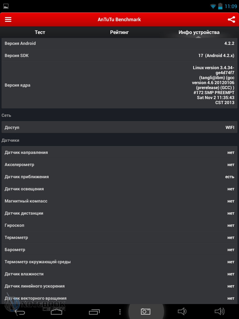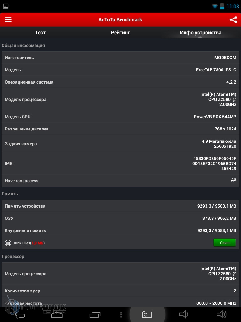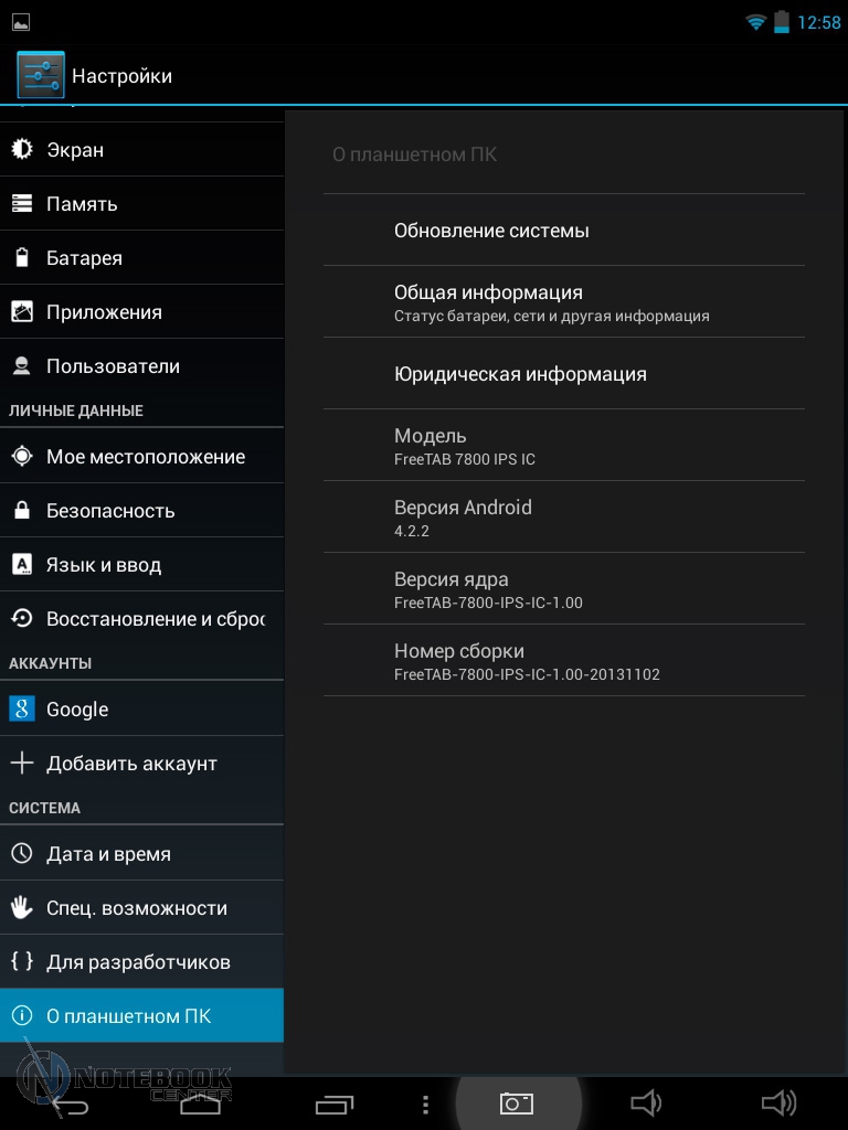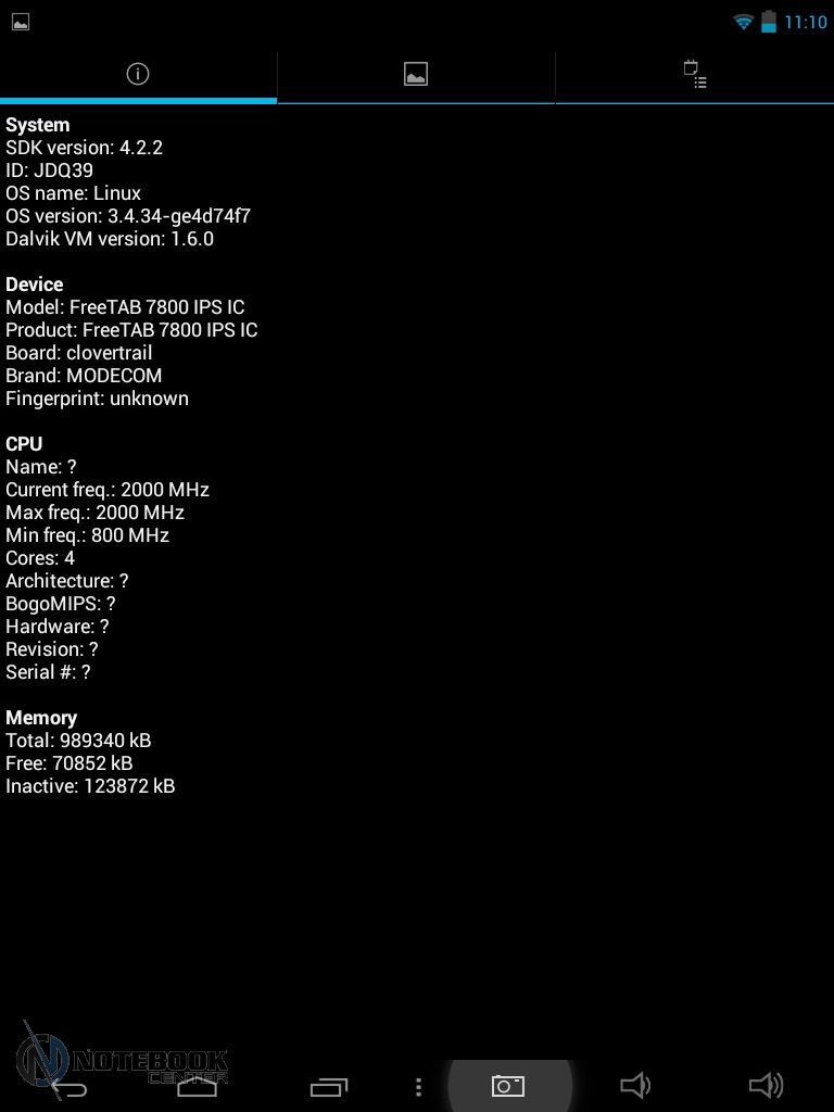 Комплект поставкиВ комплект поставки входит, непосредственно, сам планшет, блок питания, провод Micro-USB/USB, наушники и две книжечки-инструкции на разных языках, в том числе и на русском. ![]() ДизайнСтоит ли говорить, что у планшета MODECOM FreeTAB 7800 IPS IC поразительное сходство с известной таблеткой от Apple: та же алюминиевая серебристая крышка, белая рамка и закругленные углы. Почти 8-дюймовый дисплей полностью покрыт стеклом, а защитная пленка призвана уберечь от отпечатков пальцев. Ориентация планшета вертикальная, над верхней рамкой имеется глазок веб-камеры. ![]() Задняя панель алюминиевая, но на боковых торцах и верхней части крышки есть пластиковые вставки, которые не несут на себе какие-либо функции, а выполнены просто для красоты. В левом верхнем углу расположена тыловая веб-камера. А в нижней части крышки можно увидеть и два небольших динамика, скрытых под решетками. ![]() По ощущениям, планшет достаточно тяжелый, однако это приятная тяжесть, которая достигается за счет используемого алюминия. Он не только добавляет планшету больше солидности и прочности, но и комфортно прохладный для рук. Габариты гаджета составляют 21х14х0.9 см, а вес равен 327 г. Эти цифры достаточно типичны для 7-8-дюймовых планшетов. А чтобы вы не сомневались, приведем наглядные примеры: например, новинка Dell Venue 7 имеет вес 314 г, длину – 19.3 см, ширину – 11.8, а толщину – 0.9 см. Тот же Apple iPad mini располагает такими габаритами: 200x135x7 мм при весе в 308 г. ![]() Дисплей, звук и веб-камераВ MODECOM FreeTAB 7800 IPS IC имеется глянцевый дисплей с несколько нестандартной диагональю – 7.85 дюймов. Кстати, не зря при взгляде на этот планшет из памяти всплывает образ Apple iPad mini, ведь они схожи даже диагональю дисплея (7.9 дюймов у последнего). Матрица выполнена по технологии IPS, разрешение экрана составляет 1024x768 пикселей, соотношение сторон – 4:3, а плотность пикселей равна 162 ppi, опять же, как у первого поколения «яблочного» конкурента. Также нам интересно было сравнить наш планшет с устройствами такого же форм-фактора, но на базе операционной системы Android, и вот что получилось: у бюджетного планшета ASUS MeMO Pad 8, разрешение которого составляет 1280x800 точек, количество пикселей – 189 ppi. А Acer Iconia Tab A1-810 может похвастать 162 ppi при таком же разрешении, как и у нашего MODECOM FreeTAB 7800 IPS IC. Иконки приложений на рабочем столе достаточно комфортного размера, поэтому не должны создавать нагрузку для глаз. ![]() Углы обзора просто-таки отменные: и по вертикали, и по горизонтали изображение не искажается, цветопередача четкая, а цвета – яркие. И даже в солнечную погоду экран не будет бликовать. ![]() Любители почитать успешно могут использовать планшет в качестве читалки. В MODECOM FreeTAB 7800 IPS IC это особенно удобно, так как размер шрифта достаточно комфортный для глаз, в чем вы можете удостовериться лично, исходя из скриншотов, расположенных ниже. ![]() Веб-серфинг – одна из самых основных задач, возложенных на любой планшетный ПК. Тестируемая модель и здесь не подкачала: по умолчанию шрифт удобного размера, и по желанию его можно увеличить или уменьшить, в зависимости от потребностей пользователя. ![]() Обещания производителя по поводу поддержки устройством технологии мультитач оказались целиком и полностью правдивыми, в чем можете удостовериться и вы, взглянув на соответствующий скриншот, расположенный ниже. Управление гаджетом возможно при помощи 5 па