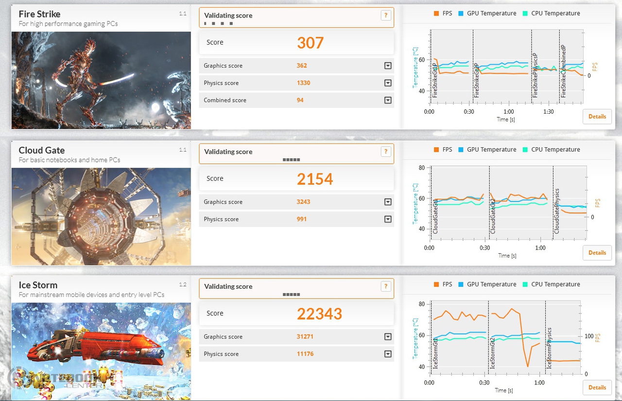 Ситуация с нагревом в режиме нагрузки несколько удивила нас, так как тут разброс увеличился в обе стороны, в одной части ноутбука температура ожидаемо «подскочила», в а другой – «упала». Это можно объяснить тем, что имея не очень мощную начинку, ноутбук с включенной на полную мощность системой охлаждения, начал более эффективно отводить тепло из корпуса. Что касается самых горячих точек, то это все те же – центральная и левая верхняя область.