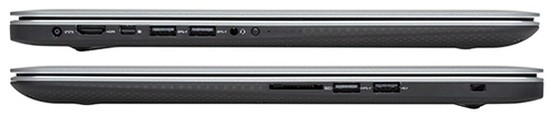 ДизайнДанное устройство относится к категории премиальных ноутбуков – это факт, даже при первом взгляде. Крышка выполнена из легкого прочного алюминия, рабочая поверхность из софт-тач пластика, днище – из углеволокна, такой состав играет исключительную роль в охлаждении, создании прочной и легкой конструкции. При сильном давлении на крышку можно видеть деформацию изображения на экране, но во всем остальном качество сборки на высоте, как и должно быть, в принципе. ![]() Ноутбук внешне получился больше сдержанным, чем ярким, и именно в этом его дорогостоящая изюминка. Серо-черный корпус, с зеркальной окантовывающей полоской на боковых гранях – беспроигрышная классика жанра. Кроме того, XPS 15 тонкий и довольно легкий – 372x254x18 мм, вес 2 килограмма. Изнутри также минимум декораций, но максимум удобств. На рабочей площадке, которая практически не пачкается благодаря темному софт-тач покрытию, можно увидеть компактно расположенную клавиатуру и одинокую кнопку питания слева. На просторах подладонной поверхности – относительно крупный тачпад, Также обращает внимание широкая петля светло-серого цвета, которая туго фиксирует крышку ноутбука. Кстати, дисплей защищен прочным стеклом и откидывается всего до 130 градусов. ![]() Дно продолжает картину минимализма – две резиновые полоски для устойчивости, отверстия для вентиляции и решетка динамиков на переходе с панели днища на торец. Все выполнено предельно аккуратно. Дисплей, звук и веб-камераНовый Dell XPS 15 обладает прекрасным 15.6-дюймовым сенсорным экраном с высочайшим разрешением 3200х1800 пикселей на базе панели IGZO. Последняя – это одна из причин не только хорошего качества дисплея, но и высокой стоимости устройства, ведь на сегодняшний день такие матрицы пока что дорогое удовольствие. Итак, в ноутбуке мы имеем молниеносный отклик тачскрина, хороший запас яркости – около 350 кд/м2, контрастность 1500:1, что дает уверенность в отменной работе при ярком освещении. Более того, дисплей глянцевый, с широчайшими углами обзора, следовательно, при любом угле просмотра картинка искажаться не будет. Разрешение QHD+ обеспечивает просто потрясающую четкость, а средние размеры экрана гарантируют, что масштабирование может и не понадобиться. Кстати, емкостный сенсорный дисплей поддерживает одновременно десять касаний и защищен прочным стеклом Gorilla Glass. ![]() Фирменная технология MaxxAudioPro от компании Dell плюс два динамика, расположенные почти на переднем торце корпуса, вот и весь аудионабор лэптопа XPS 15. Тем не менее, качество звука, целиком и полностью заслуживает похвалы, поскольку объемные сочные частоты и впечатляющий запас громкости характерны далеко не для всех ноутбуков в классе мультимедийных устройств. Также в новинке есть широкоформатная 1 Мп веб-камера в компании двух цифровых микрофонов. Она с легкостью обеспечивает видеосвязь, например, в Skype. ![]() Клавиатура и тачпадDell XPS 15 имеет обычную клавиатуру с привычным набором клавиш и раскладкой. Однако здесь отсутствует нампад, так что любителям цифрового ввода придется отказаться от этой возможности. Сама по себе клавиатура очень компактна, и на большой территории рабочей поверхности она смотрится еще меньше. Клавиши матовые, шероховатые, имеют ярко выраженную вогнутую форму. Присутствует подсветка, необходимая для комфортной работы в темное время суто