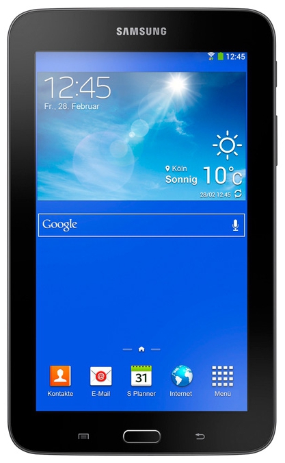 ДизайнВ дизайне устройства сплошной минимализм: в качестве материала задействован пластик, достаточно дешевенький на вид. Задняя панель стилизована под кожу, благодаря чему не кажется слишком скучной и неинтересной. Кстати, в дизайне Galaxy Tab 3 7.0 Lite реализована широкая цветовая палитра, помимо черного и белого цвета можно выбирать между желтым, розовым или зеленым. При этом меняется только цвет задней панели и боковых граней, передняя часть неизменно белая (кроме черного варианта, он весь такого цвета). ![]() Практически всю переднюю часть занимает экран. Над ним имеется разговорный динамик, а вот привычной фронтальной камеры здесь нет. Внизу – три традиционные для Samsung кнопочки, две из которых – сенсорные. ![]() Сзади же все, как обычно: объектив основной камеры, под ним –фирменная надпись Samsung. По всем торцам практически равномерно распределились разъемы и порты. Ориентация у Samsung Galaxy Tab 3 7.0 Lite вертикальная. Несмотря на то, что устройство бюджетное, вследствие чего производители часто экономят на качестве сборки, а также материалов, здесь такой проблемы нет. Задняя панель абсолютно немаркая, видимые отпечатки пальцев на ней не остаются. Люфты, прогибы – все это не про Galaxy Tab 3 7.0 Lite. ![]() Таблетка очень мобильная, ее легко можно держать в руке длительное время, благодаря весу 310 г и габаритам 193x116x10 мм. Дисплей, звук и веб-камераВ 7-дюймовом дисплее планшета Samsung Galaxy Tab 3 7.0 Lite SM-T110 используется матрица TN, разрешение которой составляет 1024х600 пикселей. Характеристики экрана, прямо скажем, оставляют желать лучшего, ведь уровень яркости и контрастности не слишком высокий, к тому же глянцевая поверхность постоянно бликует, еще и разрешающая способность экрана очень низкая. ![]() Углы обзора также подкачали, при малейшем отклонении наблюдается инверсия, причем на улице рассмотреть изображение очень сложно, и даже при максимальной яркости ситуация не улучшается. Из плюсов можно выделить использование олеофобного покрытия, но полностью проблему отпечатков пальцев оно все же не решает. Автоматической регулировки яркости подсветки нет. ![]() Веб-камера в данном гаджете только одна. И для видеосвязи она подходит не лучшим образом, разве что придется общаться с собеседником посредством тыловой камеры, повернув заднюю часть планшета к себе лицом. Кстати, ее разрешение составляет всего 2 Мп, что является очень слабым показателем. Впрочем, с ее помощью можно попробовать сделать фото, хотя его качество будет неидеальное, малое количество пикселей будет заметно невооруженным взглядом. ![]() Динамик скрыт под двумя маленькими прорезями на задней части устройства, возле камеры. Выдающихся результатов от него никто, конечно же, не ожидает. И не зря, ведь звучание находится на низком уровне. Кроме того, на максимальной громкости звук искажается, и ощутимо слышны хрипы. Впрочем, ситуацию можно исправить, если надеть наушники. КлавиатураКлавиатура выглядит точь-в-точь, как в других моделях, работающих на операционной системе Android. Ее интерфейс интуитивно понятен для каждого, поэтому работать с виртуальной клавиатурой очень легко и просто. Для ввода информации вы можете выбрать как русский язык, так и любой другой. Уже все привыкли к традиционным кнопкам Samsung, расположенным под экраном. По сути, это кнопки управления гаджетом, которые называются «Меню», «Назад» (обе с