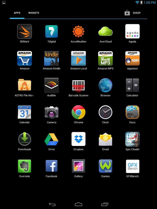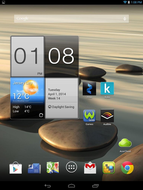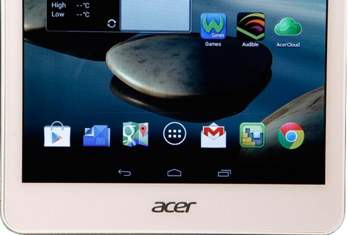 ДизайнПланшет представляет собой 8-дюймовое устройство, в котором удивительно хорошо гармонируют между собой все элементы дизайна. Задняя крышка выполнена из металла в отличие от модели 810, а при такой цене – вообще редкость. Пластик тоже есть – это вставка в верхней части крышки, где разместились антенны беспроводных сетей. Почти всю переднюю поверхность занимает дисплей формата 4:3, над ним расположена фронтальная веб-камера, а ближе к нижней грани – фирменный логотип Acer. В целом с лица A1-830 очень напоминает iPad Mini, за исключением физической кнопки у Apple и логотипа у Acer. Что касается внешнего вида задней панели, то, в целом, все сдержанно и практично. Тыловая камера оказалась не по центру, как обычно, а в левом верхнем углу. Посередине – еще одна фирменная надпись компании, а в самом низу симметрично разместились два небольших динамика. Ориентация планшета вертикальная. Качество сборки – просто-таки на высоте! На ощупь устройство прочное, на вид – долговечное. Придраться абсолютно не к чему, таблетка не прогибается ни в какой точке, да и вообще, создается впечатление, что она спокойно прослужит, как минимум, несколько лет. Вспомним и о размерах планшета. Девайс получился относительно тонким и легким, ведь его габариты составляют 203×138×8.2 мм, а вес равен 380 г. При таком раскладе держать гаджет в одной руке можно даже продолжительное время. Дисплей, звук и веб-камераВ Acer Iconia Tab A1-830 вполне удачного размера дисплей: обычно 7 дюймов еще маловато, а 10 уже неудобно держать в одной руке, поэтому 8 дюймов – в самый раз. И форматом, и форм-фактором он очень напоминает iPad Mini. Разрешение этого глянцевого IPS-экрана составляет 1024х768 точек, а плотность пикселей равна 162 ppi. Пожалуй, единственным серьезным минусом можно назвать заметные глазу отдельные пиксели. Яркость и контрастность находятся на вполне высоком уровне, благодаря чему на выходе имеем относительно хорошую цветопередачу. Углы обзора хоть и не максимальные, но достаточно высокого уровня, да это и неудивительно, учитывая, что здесь использована не TN-матрица. На улице в солнечную погоду дисплей может бликовать, поэтому лучше работать с ним в тени или в помещении. Два динамика располагаются в нижней части планшета, достаточно близко друг к другу. Их звучание явно не разочарует пользователей, звук остается чистым и не хрипит даже на максимальной громкости. Возможно, им не хватает низких частот, но в целом акустика в планшете находится на уровне выше среднего, тем самым, она легко удовлетворяет любые запросы пользователей (просмотр фильмов, прослушивание музыки и т.п.). В планшетном ПК имеется две камеры. Первая – фронтальная, пригодится для видеоразговоров, для чего вполне достаточно ее разрешения 2 Мп. В тыловой камере разрешение несколько лучше – 5 Мп. Разумеется, конкурировать со специальной техникой (например, фотоаппаратом) она не будет, но надо признать, что для 8-дюймового гаджета, да еще и вполне недорого, качество задней камеры вполне приемлемое. КлавиатураЕсли вы ранее уже имели дело с устройствами, работающими на базе Android, клавиатура Iconia Tab A1-830 придется вам по душе. Она очень простая в использовании, а интерфейс доступен и интуитивно понятен каждому. Кроме того, для большего удобства пользователь сам может выбрать желаемый язык, и изменить его на другой в любое время. Клавиши виртуально