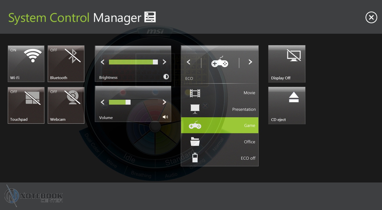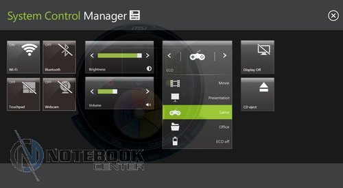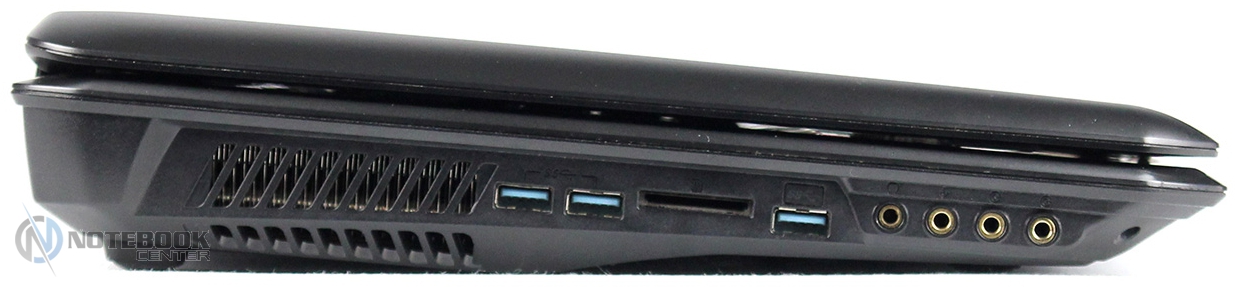 ДизайнНоутбук внешне очень красив и смотрится действительно по-игровому. Тут можно увидеть и замысловатые рубленые линии, и сочетание различных материалов, и дизайнерские фишки в виде светящегося логотипа или сенсорных мультимедийных клавиш. Все в этом ноутбуке указывает на его уникальность и принадлежность к касте элитных геймерских девайсов. ![]() Верхняя крышка и подладонная поверхность изготовлены из алюминия, это сделано не только ради красоты, но и для практичности, потому что алюминий не затирается так сильно, как пластик. Что касается остальных элементов корпуса, то они как раз пластиковые, но пластик этот очень качественный и приятный на ощупь. На черных и серых поверхностях остаются отпечатки пальцев, особенно на глянцевой подложке клавиатуры и рамке дисплея, но, к счастью, они быстро и легко убираются. ![]() Как уже было написано выше, GT70 2OC имеет ряд интересных элементов, к таким можно отнести светящийся логотип компании MSI на крышке, темно-красную полоску возле мультимедийных клавиш, подсвечивающуюся кнопку включения, решетки динамиков, серебристую окантовку веб-камеры и кнопок тачпада, а также разноцветную подсветку клавиатуры. ![]() Корпус собран идеально, никаких щелей и зазоров. А вот что касается его прочности, то тут есть некоторые недочеты, например, прогибы в левой части клавиатуры и на крышке ноутбука. Кстати сама крышка за счет своих размеров и небольшой толщины немного «гуляет» и изгибается, впрочем, это свойственно большинству ноутбуков с подобной диагональю. ![]() Данный ноутбук имеет испещренное прорезями днище, на котором также разместились резиновые ножки, отсек для аккумулятора и сабвуфер, прикрытый такой же решеткой, как и верхние динамики. Также MSI GT70 располагает отсеком для быстрого доступа к внутренним компонентам, чтобы его открыть необходимо отвинтить семь винтов. Убрав крышку можно увидеть два отсека для жестких дисков, два слота для оперативной памяти и массивную систему охлаждения, состоящую из переплетающихся медных труб, двух радиаторов на процессоре и видеокарте, а также габаритного кулера, который заметно больше чем в большинстве ноутбуков. К сожалению, заменить оперативную память без снятия системы охлаждения не получится, так как оба верхних слота перекрываются медными трубками. ![]() Само собой, что полноценный и производительный игровой ноутбук будет большим и громоздким в силу определенных особенностей этого класса устройств. Так MSI GT70 2OC имеет габариты 428x288x55 мм, но благодаря замысловатым рубленым формам корпуса, он не смотрится слишком громоздким. Что же касается веса, то он находится на уровне 3.78 кг, что для 17.3-дюймовой игровой модели не так уж и много, для сравнения ASUS G750JZ весит ровно на один килограмм больше. ![]() Дисплей, звук и веб-камера17.3-дюймовый дисплей позволяет увидеть больше деталей в сравнении с 15-дюймовыми моделями. Кстати помимо большой диагонали этому ноутбуку досталось и высокое разрешение – 1920х1080 пикселей, впрочем, меньшего здесь никто и не ожидал. Тип матрицы TN, но не стоит впадать в панику и сожалеть о том, что это не IPS, ведь качество данной матрицы нас приятно порадовало. Единственное за что можно придраться к дисплею, так это углы обзора, так при отклонении дисплея от себя изображение несколько искажается, но эти изменения не столь заметны, чтобы создать сущест