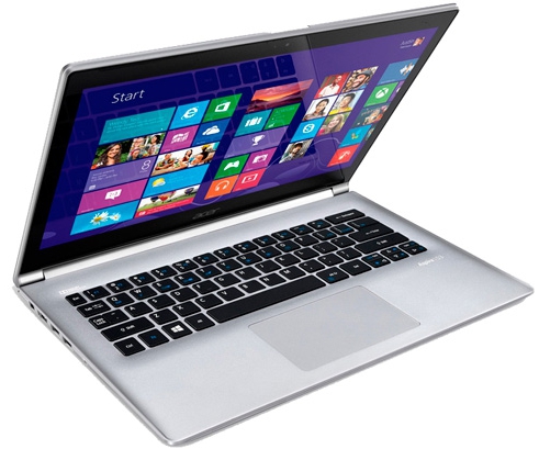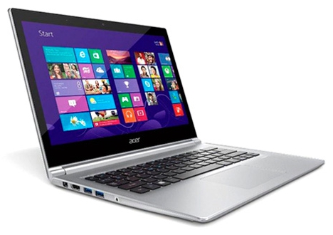 ДизайнЧто ж, дизайн Acer Aspire S3-392G и впрямь заставляет обратить внимание на ноутбук. Его корпус выполнен из металла, при этом, крышка – пластиковая. Последняя имеет глянцевую поверхность, и это объясняет ее маркость. Таким образом, чтобы устройство было всегда «в форме», с собой в обязательном порядке нужно носить тряпочку. На крышке нет никаких значимых деталей, кроме фирменного логотипа Acer, расположенного посередине левого края. К слову, доминантным в дизайне выступает серый цвет, но окантовка дисплея и кнопки клавиатуры – черные. ![]() Кстати, экран покрыт стеклом от края до края, а не сильно широкую рамку совсем незаметно, когда экран выключен. Клавиатура в Aspire S3-392G на первый взгляд кажется достаточно удобной и функциональной, радует больших размеров тачпад. Верхняя часть ноутбука скреплена с нижней посредством одной продолговатой петли. Она в меру податливая, спокойно открывается одной рукой. Максимальный угол раскрытия гаджета составляет 180 градусов, чего должно быть достаточно для каждого пользователя. Что касается днища, то оно цельное, и апгрейду не подлежит. Там можно увидеть вентиляционную решетку ближе к заднему краю устройства, два динамика, скрытые сеткой, и множество винтиков по всему периметру. ![]() Резюмируя, Acer Aspire S3-392G производит достаточно приятное впечатление при первом знакомстве. Он имеет хорошее качество сборки, единственное замечание заключается в том, что если сильно надавить на крышку, можно заметить деформацию изображения на экране. Однако этим иногда грешат ультрабуки с небольшой толщиной. Кстати, о ней: габариты лэптопа составляют 324х225х16-18 мм, вес – 1.65 кг. ![]() Дисплей, звук и веб-камераAcer Aspire S3-392G оснащается компактным, по современным меркам, 13.3-дюймовым экраном с разрешением 1366х768 пикселей. Глянцевый дисплей покрыт стеклом Gorilla Glass, что обеспечивает дополнительную защиту от любых механических повреждений. Тип матрицы – TFT, это нечто среднее между TN и IPS. Конечно, минимальное изменение ракурса не приведет к инверсии, но все же углам обзора далеко до идеальных. ![]() Устройство не могло бы позиционироваться как ультрабук третьего поколения, если б не обладало сенсорным экраном. В данном случае сенсор показывает себя с хорошей стороны: отклик быстрый, команды выполняются четко, нет необходимости их повторять. Имеется поддержка жестов, а также есть 10-пальцевый мультитач. Яркость и контрастность находятся на приемлемом уровне, единственное, что из-за глянцевости дисплея не получится избежать бликов. В целом, экран получился без сюрпризов, однако и восторгов он не вызвал. ![]() Два динамика располагаются параллельно друг другу на днище гаджета. Акустические данные на должном уровне и даже на максимальной громкости звук не хрипит. Впрочем, звучанию явно не хватает басов, многих это может разочаровать. Чтобы улучшить ситуацию, стоит воспользоваться наушниками. HD-веб-камера, расположенная на верхней рамке экрана, отлично подойдет для видеозвонков. Фотографии с ее помощью тоже можно сделать, но на их хорошее качество надеяться не приходится. ![]() Клавиатура и тачпадВ Acer Aspire S3-392G, как и во многих других современных лэптопах, установлена клавиатура островного типа. Пространство между ее клавишами увеличенное, что создает дополнительные удобства при печатании. Кнопки имеют квадратную форму, они достаточно большие, и э