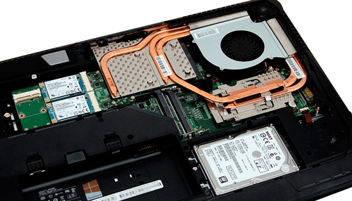 Комплект поставкиВ этом ноутбуке интересно все, даже начиная с комплекта поставки. Дело в том, что производитель предлагает два варианта комплектующих аксессуаров – один стандартный, вмещающий в себя только блок питания и документацию, и второй – расширенный. В последнем предусмотрены игровая мышка SteelSeries Kinzu v2, коврик под нее, наушники StellSeries Siberia v2, фирменный рюкзак и самое неожиданное для современности – печать с изображением дракона. ![]() ДизайнТрадиционно экстерьер игровых машинок MSI необычен. Кого-то он впечатлит, кого-то разочарует, однако равнодушным точно не оставит. Как правило, Доминаторы из серии GT70 все между собой очень похожи, отличаясь лишь незначительными элементами декора. Так и герой нашего обзора имеет узнаваемый дизайн, просто излучающий силу и мощь современных технологий. Габариты корпуса ноутбука предсказуемо масштабны, в особенности вес, но ведь так и должно быть у 17-дюймовых по-настоящему мощных геймерских лэптопов – 428х288х55 мм, вес – 3.9 кг с батареей. ![]() Корпус ноутбука черного цвета. Крышка алюминиевая, но она окаймлена полоской из пластика аналогичной расцветки. Посередине расположены сразу два логотипа – MSI и изображенный на фоне щита дракон (обозначает принадлежность к игровой серии), последний, кстати, подсвечивается, здорово контрастируя с черным цветом крышки. Каким образом – непонятно, однако такой подход к оформлению внешности только подчеркивает боевой дух лэптопа, укрепляя его позиции в зрительном восприятии пользователя. ![]() Изнутри тематика солидности продолжается. Рамка дисплея довольно широкая, и даже здесь отсутствует привычность – она как бы состоит из двух частей, а веб-камера помещена в своеобразную щель между ними над дисплеем. Особый шарм рабочей поверхности придает умелое сочетание матовости и глянца, которое покрывает область вокруг клавиатуры. А вот тачпад неожиданно миниатюрный, хотя общего впечатления этот момент совершенно не портит. Несколько кнопок, сетки динамиков, ряд светодиодов – все самое нужное здесь есть, все на своих местах и выглядит в общей массе отлично. ![]() Днище ноутбука пластиковое. Поверхность неровная, и когда Доминатор стоит на столе, это создает дополнительную опору, оставляя свободными многочисленные воздухозаборники, которые в большом количестве сконцентрированы на днище. Кроме них здесь находятся сабвуфер, опорные ножки квадратной формы, и съемная батарея, фиксирующаяся двумя ползунками. ![]() Дисплей, звук и веб-камераНесмотря на внушительные 17.3 дюйма, дисплей выглядит довольно крохотно (в сравнении с общими габаритами устройства) – всему виной широченная пластиковая рамка вокруг. Разрешение 1920х1080 пикселей можно встретить во всех модификациях лэптопа без исключения, также здесь предусмотрено матовое покрытие, без которого экран ловил бы блики и отражения «на ура». Необъяснимым является тот факт, что в основе дисплея лежит TN-матрица со всеми своими недостатками, тогда как логичнее было бы здесь увидеть IPS. Хотя с другой стороны, существует версия, что «тиэнка» гораздо более адаптивна под геймерский тип использования благодаря самому короткому времени отклика. В целом, если без предвзятостей оценивать качество экрана Доминатора, то можно говорить об очень хорошем уровне: достойные углы обзора (вертикальные хуже горизонтальных), естествен
