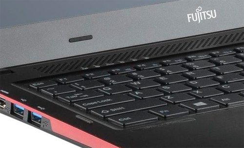 ДизайнВнешность ноутбука очень привлекательная. Здесь уместно смотрится черная с красным расцветка, а также корпус с минимумом закруглений. К тому же четко очерченные края панелей создают определенный строгий вид, но это не делает Fujitsu LIFEBOOK U554 слишком скучным. Из материалов используется алюминий и пластик, поэтому назвать ноутбук ненадежным вряд ли получится. Помимо этого, он не слишком маркий за счет матовой шлифованной поверхности интерьера и экстерьера. ![]() Собран ноутбук очень хорошо, тем не менее, его корпус немного скручивается. А вот зазоры практически незаметны. Кстати, прочные шарниры, удерживающие дисплей, все равно не позволяют избежать его небольшого раскачивания. Что касается размеров корпуса, то они составляют 322x225x17.5мм. При этом вес LIFEBOOK U554 не превышает полутора килограммов. ![]() Дисплей, звук, веб-камераЭкран ноутбука имеет 13.3-дюймовую диагональ и разрешение 1366х768 пикселей. Дисплей отличается неплохим уровнем яркости и реалистичной цветопередачей. К тому же у него матовое покрытие, которое позволяет избежать бликов и снизить количество отражений. Что касается углов обзора, то в TN-матрице они далеко не идеальные, правда, изображение искажается лишь при значительном отклонении экрана, поэтому только изредка придется подстраиваться. Дисплей ноутбука не имеет сенсорной поверхности, чем и отличается от Fujitsu LIFEBOOK U574. ![]() Звучит устройство весьма посредственно, несмотря на поддержку акустики DTS Boost. Низких частот не слышно вообще, на максимальном уровне громкости слышны небольшие скрипы и шумы. В целом, звучание, выходящее через два стереодинамика, маловыразительное, ему не хватает, как минимум, глубины. В наушниках музыка будет звучать более качественно, хоть и не безупречно. Камера в LIFEBOOK U554 имеет стандартное разрешение 1.3 Мп. Как правило, его хватает на то, чтобы нормально пообщаться, например, в Skype. ![]() Клавиатура и тачпадКлавиатура получилась не полноразмерной, возможно, людям с крупными пальцами она может показаться немного тесной. Также в ней нет нампада, что вполне объясняется 13-дюймовым форм-фактором. Однако в целом клавиатура очень удобная, при нажатии кнопок ощущается четкая отдача, а сам ход клавиш не слишком тугой. Набирать тексты будет совсем несложно, даже если на это потребуется значительная часть времени. Стоит отметить и водостойкую поверхность, которая защитит от небольшого количества пролитой жидкости внутренние компоненты. ![]() Тачпад в ноутбуке сделан бескнопочным. Он немного гладкий, среднего размера, практически не углублен. К тому же сенсорный манипулятор отлично распознает мультитач-жесты. На чувствительной поверхности тачпада располагается специальная маркировка, разделяющая зону правой и левой мыши. Нажатие в этой части осуществляется гораздо сильнее. ![]() ПроизводительностьFujitsu LIFEBOOK U554 (VFY:U5540M65D2RU) поставляется с предустановленной операционной системой Windows 8.1 64-разрядной версии. Не исключается возможность установки и других ОС, в частности, Windows 7 или 8, в том числе профессиональных версий. В корпусе ноутбука установлен низковольтный процессор поколения Haswell – Intel Core i5-4200U. Чип имеет тактовую частоту 1.6 ГГц и кэш третьего уровня 3 МБ. Два ядра процессора могут одновременно обрабатывать до четырех потоков данных благодаря Hyper-Threading. Кроме того, при поддержке технологии Turbo Boost частота может
