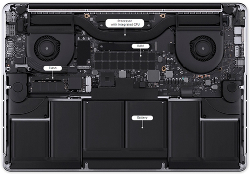 ДизайнВнешний вид MacBook Pro Retina 15 Mid 2014 идентичен своему предшественнику, о котором мы уже писали ранее – MacBook Pro 15 Retina. Корпус лэптопа выполнен из цельного алюминиевого листа серебристого цвета, в общем-то, ничего нового – дизайн строгий, сдержанный и неприлично дорогой. Крышку ноутбука все так же украшает надкушенное яблоко, которое приятно подсвечивается в темноте. На фоне серого корпуса выгодно выделяются черный клавиатурный блок, шарнир и дисплей. Под клавиатурой расположен достаточно большой тачпад, на верхней грани рамки дисплея – объектив веб-камеры. ![]() Устройства от Apple известны своей прочностью, и данный гаджет не стал исключением: его корпус крепкий, нет ни люфтов, ни скрипов, ни прогибаний при надавливании. Важными его достоинствами являются небольшие вес (2.02 кг) и габариты (359х247х18 мм). ![]() Днище цельное, по периметру разместились четыре ножки, которые не позволяют устройству скользить по поверхности. Для тех, кто только знакомится с ноутбуками Apple, покажется удивительным отсутствие вентиляционных решеток на днище. Впрочем, нет причин для волнения: производитель поместил их возле петли, где перекрыть их не представляется возможным, поэтому ремонт MacBook дело достаточно редкое. ![]() Как всегда, это шикарное внешне устройство, которое вызывает лишь ассоциации с роскошью и успехом. ![]() Дисплей, звук и веб-камераДисплей Apple MacBook Pro Retina 15 Mid 2014 – отдельная песня! 15.4-дюймовый глянцевый IPS-экран, как и прежде, имеет разрешение 2880х1800 точек, при этом плотностью пикселей на дюйм составляет 220, что, в свою очередь, дарит пользователю невероятно четкое изображение. Отдельно хочется отметить хорошие показатели яркости и контрастности, картинка выглядит очень насыщенной и реалистичной. Цветовой охват в пространстве sRGB составляет 95%. ![]() Любителей работать с ноутбуком на улице не может не радовать антибликовое покрытие экрана, которое позволяет в достаточной степени наслаждаться качественной картинкой. Благодаря качественной матрице углы обзора также не подкачали: изображение не искажается, с какой бы стороны на него не посмотрели, а значит, смотреть фильм с 15-дюймового дисплея можно даже большой компанией. ![]() За звук в этом ноутбуке отвечают два динамика, расположенные по сторонам от клавиатуры. Они спрятаны под перфорированными решетками продолговатой формы. Качество звука не может не радовать, ведь оно чистое и не искажается даже на максимальной громкости. ![]() Над экраном расположилась HD веб-камера FaceTime c разрешением 720p, которая позволяет болтать по Skype, совершать видеозвонки на iPad, iPhone, iPod touch или Mac через приложение FaceTime. ![]() Клавиатура и тачпадКлавиатура в MacBook Pro Retina 15 Mid 2014 типичная для всех 13- и 15-дюймовых моделей ноутбуков Apple. Из поколения в поколение внешне она не меняется, а потому легкоузнаваемая многими. Начнем, пожалуй, с того, что клавиатура островного типа, ее клавиши имеют квадратную форму и находятся на приличном друг от друга расстоянии. Благодаря этому при интенсивной печати нет риска задеть расположенную рядом кнопку, что существенно экономит время и нервы. ![]() Отдельно хочется отметить отличное оформление клавиатурного блока: черные кнопки на сером алюминии смотрятся очень выигрышно. Маркировка кнопок выполнена в белом цвете. Во время работы подложка не прогибается, что является дополнительным плюсом в копилке дост