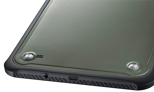 Комплект поставкиУ планшета получился достаточно продуманный комплект поставки. В него, помимо самого гаджета, входит защитный чехол, пассивный стилус C-Pen и сопутствующая документация. ![]() ДизайнТак как Galaxy Tab Active относится к узкоспециализированной нише, вполне логично ожидать, что планшет будет выглядеть нестандартно. Так и есть: после знакомства с ним лишь смельчак решится приобрести его на замену своему привычному планшетному ПК. Все же данное устройство будет смотреться уместно лишь в соответствующих условиях в руках профессионалов. ![]() Остановимся чуть более подробно на том, что собой представляет заявленный производителем класс защиты данного планшета. Так, IP67 является международным стандартом защиты того или иного устройства от воздействия внешней среды. Цифры в данном понятии не статичные, они меняются в зависимости от того, насколько велика степень этой самой защиты. В нашем случае имеет место цифра 67, где 6 – максимально возможное значение, и оно обозначает защиту от попадания пыли внутрь устройства. Вторая цифра, в нашем случае 7-ка, обозначает степень защиты от проникновения влаги, что позволяет временно погружать планшет в воду на глубину до 1 м. Всего в этой классификации 9 подкатегорий, максимальная обеспечивает работу под водой на высокой глубине или под высоким давлением. ![]() Samsung Galaxy Tab Active также соответствует параметрам военного стандарта MIL-STD-810G. С его помощью можно определить, способно ли устройство противостоять «нетепличным» условиям, и насколько хорошо это выражено. Перечень таких условий достаточно широкий, и он включает в себя тесты воздействия низких и высоких температур, дождя, песка и пыли, вибрации от стрельбы, стойкости к солнечным лучам, тряски при транспортировке и другие. ![]() Как упоминалось выше, таблетка способна с достоинством выдержать падение с высоты с метровой высоты без чехла или с 1.2-метровой, если будет в чехле. Чехол, в свою очередь, является весьма удобным и практичным аксессуаром, который обеспечивает должную защиту корпуса планшета и его экрана. В его верхней части есть ниша для стилуса. Чехол черного цвета, он резиновый и очень прочный, но, как ни крути, все же добавляет веса гаджету и делает его достаточно массивным. ![]() Впервые взяв этот планшет в руки, кажется, что держишь какую-то мини копию «Терминатора», никак не меньше. Корпус имеет текстурированную поверхность, за счет чего гаджет удобно держать в руках, но, вполне возможно, что это может поспособствовать накоплению грязи и пыли. По периметру задней крышки расположились четыре декоративные металлические накладки и кольцо вокруг веб-камеры. Никаких винтиков, как у ноутбуков, под ними нет. Крышка цельная и снимается одним движением. Вот только некоторая доля осторожности не помешает, ведь удерживается она с помощью большого количества пластиковых защелок. Боковые грани устройства имеют характерные выступы. Сделаны они из пластика, а в качестве декора используется узор в виде вертикальных полосок. ![]() Лицевая сторона Galaxy Tab Active представлена 8-дюймовым экраном, над которым виднеется фронтальная вебка. Под дисплеем расположились три физические кнопки управления устройством. ![]() И напоследок хотелось бы отметить габариты устройства. Его размеры составляют 213х126х10 мм, а вес равен 392 г, при этом чехол добавляет еще 100 г, поэтом