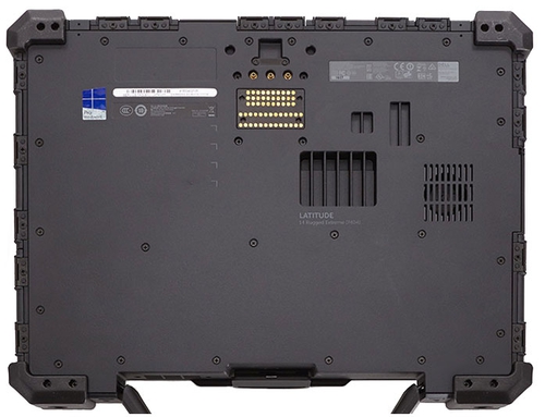 ДизайнБезусловно, от ноутбука, защищенного от природных и человеческих факторов, ожидать изысканности или утонченности не стоит. Latitude 14 Rugged Extreme имеет чрезвычайно оригинальную внешность, напоминающую мобильную радиостанцию в чемодане. Он увесист и габаритен, заключен в корпус из магниевого сплава с ультраполимерным амортизирующим вставками. Более того, все отверстия герметично защищены, а дисплей в закрытом положении плотно прилегает к рабочей поверхности и фиксируется защелкой. Ноутбук соответствует военному стандарту MIL-STD-810G и имеет класс защищенности IP65. Это значит, что он выдерживает падения с высоты до 1.8 метра в закрытом положении и выключенном состоянии, и до 80 см, если он работает, не реагирует на сотрясения, вибрацию, повышенную влажность (до 95%) и температурные перепады от -29°C до +63°C. Так что пыль и песок вообще не представляют собой даже малейшей опасности для данного устройства. ![]() Размеры корпуса Latitude 14 Rugged Extreme (7404) действительно нестандартны и впечатляют обычного пользователя, особенно в плане толщины. В области резиновых накладок по углам она составляет 60 мм, ширина и глубина 356х247 мм соответственно. Вес, кстати, не такой уж большой, по крайней мере, выглядит устройство гораздо массивнее – на деле всего 3.8 кг. Для переноса ноутбука предусмотрена специальная прорезиненная ручка, встроенная в корпус. Угол раскрытия дисплея составляет более 180 градусов – его можно открыть до полностью горизонтального положения, если появится такая необходимость. ![]() Крышка ноутбука с внешней стороны закреплена многочисленными винтами, расположенными по всему периметру. Прямо посередине находится логотип Dell, а сама поверхность имеет шероховатую текстуру, приятную наощупь и практичную в обслуживании. Более того, она достаточно стойкая к появлению царапин, что, в принципе, логично, учитывая возможный способ использования Latitude 14 Rugged Extreme. ![]() На нижней панели также очень много фиксирующих винтов – они буквально повсюду! Здесь расположена решетка системы охлаждения, под которой в видимой доступности крутится вентилятор. Возникает вполне уместный вопрос – при попадании воды или, к примеру, песка, через дно, не начнет ли барахлить система вентиляции? Однако в Dell уверяют, что все под контролем, и никакие стихии не остановят кулер. ![]() Несмотря на большое количество болтов, снять крышку и добраться до внутреннего содержимого устройства весьма просто. Панель изнутри по периметру оснащена резиновой прокладкой, которая обеспечивает полную герметичность и защищенность от воды, пыли и грязи извне. Расположены все элементы под крышкой очень компактно и продуманно. Напоминаем, батарея и SSD находятся в отдельных слотах для быстрого доступа справа и слева на боковых торцах корпуса. Также сняв крышку можно быстро проапгрейдить память, добраться к модулям беспроводных сетей и почистить кулер. Кстати комплект поставки ноутбука включает стилус, который фиксируется на корпусе с левой стороны. Он имеет свой собственный разъем и достаточно незамысловатый способ крепления при помощи шнурка. ![]() Также на днище присутствуют контакты для установки док-станции. Производитель предлагает несколько вариантов док–модулей: для настольной эксплуатации и для монтажа в машине. ![]() Дисплей, звук, веб-камераDell Latitude 14 Rugged Extreme (7404), на первый взгляд, имеет обы