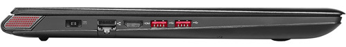 ДизайнОбычно игровые ноутбуки имеют 17-дюймовый форм-фактор, но в этом случае устройство более компактное, ведь диагональ его составляет 15 дюймов. Крышка гаджета выполнена из алюминия, ее украшает множество пересекающихся линий, которые создают впечатление испещренной поверхности. Впрочем, в жизни это смотрится достаточно интересно и необычно, в общем, обращает внимание. Кроме того, ближе к краям крышки имеются два вертикальных ребра, добавляя дизайну в какой-то степени хищности и некой брутальности. В целом, инженеры постарались: внешний вид ноутбука строг, минималистичен, при этом видно, что устройство – не на повседневку, а для решения серьезных задач. ![]() Тем не менее, крышка получилась неидеальной из-за своей маркости. Металл активно собирает отпечатки пальцев, а также пыль, поэтому, если ноутбук регулярно не протирать, он быстро потеряет свой презентабельный вид. ![]() Внутри ноутбука так же круто, как и снаружи. Дисплей окружает глянцевая рамка средних размеров, на верхней грани которой разместилась веб-камера. Две части лэптопа соединены шарнирным механизмом, который закреплен четко по центру. Сразу бросается в глаза изобилие красного цвета: он украшает решетки динамиков, боковые грани кнопок клавиатуры. Под ней разместился средних размеров тачпад, который в игровых ноутбуках занимает все же второстепенную роль. ![]() Что касается днища, то оно получило точь-в-точь такую же текстуру, как и крышка, соответственно, маркость здесь также присутствует. Цельное дно усеяно вентиляционными решетками, с одной стороны от которых можно увидеть красную сетку сабвуфера. Lenovo IdeaPad Y5070 хоть и не назовешь компактным, но в целом как для игрового лэптопа его габариты (387х263х24 мм) и вес (2.4 кг) являются приемлемыми. А вот по сравнению с IdeaPad Y7070, вес которого составляет 3.4 кг, наша 15.6-дюймовая модель и вовсе пушинка! ![]() Дисплей, звук и веб-камера15.6-дюймовый экран ноутбука получил разрешение Full HD, и если бы не остальные характеристики, дисплей можно было бы назвать хорошим. Однако все впечатление портит TN-матрица, которая, к сожалению, не способна обеспечить широкие углы обзора, поэтому даже небольшое отклонение неминуемо влечет за собой инверсию. ![]() Покрытие матовое и это одновременно и хорошо, и плохо. Плюс заключается в том, что матовому экрану солнечные блики страшны не так, как глянцевому, а минусом является то, что цвета выглядят не очень насыщенно. Яркость в данном случае – чуть больше 200 кд/м2, с контрастностью дела также обстоят неважно. Соответствие sRGB-пространству не дотягивает и до 60%. Сенсорное управление, которое присутствует у 17-дюймового старшего брата, здесь не предусмотрено. ![]() Что ж, несложно догадаться, что все эти характеристики делают экран не самым идеальным вариантом для игр, ведь геймеру важно не только, чтобы игрушка шла без торможений, но также и ее визуальное восприятие, т.е. насколько реалистично и красочно будут отображены персонажи и события на экране. Кстати, существует еще одна комплектация, которая включает в себя дисплей с более высоким разрешением – 3840х2160 пикселей (4K). У него глянцевая поверхность и есть поддержка сенсорного ввода, а картинки получаются невероятно четкими и сочными. Для полного погружения в виртуальную реальность огромное значение имеет звучание. С этим у Lenovo IdeaPad Y5070 нет проблем: динамики от JBL подде