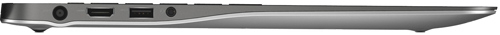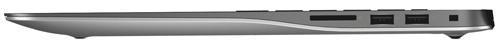 Интерфейсы в ноутбуке располагаются ближе к задней панели, чем к фронтальному торцу. На правой грани находится кардридер SD/SDXC/SDHC, пара USB 2.0 и 3.0, а также слот Noble по типу замка Кенсингтона. Еще один USB 3.0 с функцией Power Share вынесли на противоположную сторону. Рядом с ним можно увидеть гнездо для подзарядки, HDMI и комбинированный аудиоразъем для подключения микрофона и наушников.