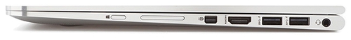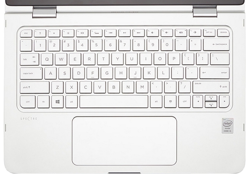 ДизайнHP Spectre х360 13 целиком изготовлен из алюминия с матовым покрытием, он выглядит очень стильно – полностью серебристое оформление корпуса только подчеркивает деловой тон. Качество сборки, так же, как и использованные материалы, заслуживает самую высокую оценку. Вообще, если бы не буквенное обозначение «Hewlett-Packard» на крышке и минималистичный дизайн, ультрабук можно было бы спутать с широко известным эппловским макбуком. ![]() Удерживается крышка двумя некрупными глянцевыми шарнирами. Они здорово сочетаются с матовым корпусом, тем самым, дизайнеры ненавязчиво намекают, что именно петли играют ключевую роль в трансформировании ноутбука в планшет. С одной стороны, шарниры достаточно крепко удерживают верхнюю крышку ноутбука, благодаря этому пользоваться сенсорным экраном очень удобно, однако, с другой – открыть одной рукой крышку у вас вряд ли получится. ![]() Трансформируемое устройство предлагает несколько режимов эксплуатации: ноутбук, планшет, палатка, стенд. Субъективно, в роли таблетки использовать HP Spectre х360 13 не очень удобно – все-таки 13 дюймов не самый лучший вариант для удержания в одной руке. Да и вес устройства 1.5 кг будет весьма ощутим в руках. Общие габариты корпуса устройства составляют 325x218x16 мм. ![]() ![]() Все внутренние компоненты устройства надежно защищены панелью днища, которая крепится при помощи нескольких винтов. Помимо них, здесь присутствуют четыре опорные ножки в форме кнопок, решетка вентиляции и пара динамиков, защищенных перфорированными панелями. ![]() Дисплей, звук, веб-камераВ HP Spectre х360 13 установлена 13.3-дюймовая сенсорная дисплейная панель IPS с разрешением 1920х1080 пикселей. Помимо такой комплектации, производителем предложена другая версия с разрешением 2560х1440, однако это, скорее, расчет на более денежных покупателей, так как Full HD целиком и полностью хватает на небольшую площадь экрана, предлагаемую трансформером. Тем более, что разница в качестве изображения будет не столь существенной, а вот нагрузка на аккумулятор/систему увеличится, да и необходимость масштабирования, скорее всего, возникнет. ![]() Сенсорный экран (поддерживается 10-пальцевый мультитач) окружен довольно широкой рамкой черного цвета, которая забирает много полезного места у дисплея. К тому же она глянцевая, как и весь экран, поэтому с удовольствием сохраняет отпечатки пальцев, даже если вы моете руки перед каждым прикосновением к стеклу. Хотя с другой стороны, пользователь будет крутить HP Spectre х360 13 как ему заблагорассудится очень часто, и может именно рамка защищает дисплей от преждевременных повреждений? ![]() Максимальная яркость экрана просто отличная – около 400 кд/м2, также не отстают показатели контрастности – на уровне 1054:1. Углы обзора предсказуемо широкие, за что нужно благодарить матрицу IPS, а антибликовое покрытие, хоть и неидеально, однако избавляет от отражений. Цветопередача на высоте, и наверняка пользователю понравится не только работать с HP Spectre х360 13, но и смотреть на нем фильмы и даже играть в игрушки. ![]() Данный ноутбук-трансформер не может похвастаться идеально громким звуком, однако качество звучания приятно радует. Всего динамиков два, и расположены они на днище, частью на горизонтальной поверхности, частью на боковых скосах. На максимальной громкости ничего не искажается, и любые тональности передаются чисто. ![]() Ве