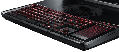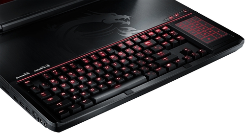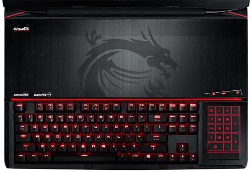Комплект поставкиКомплект поставки MSI GT80 2QE TITAN SLI представляет собой не менее интересное зрелище, нежели сам герой обзора. Производитель предусмотрел не только необходимые аксессуары, но и милую безделушку в виде мягкой игрушки дракончика ярко-красного цвета. Хм, весьма интересный способ проложить тропинку к сердцу сурового геймера. ![]() Помимо дракона и ноутбука, в комплект поставки включили просто огромное зарядное устройство, на который одного взгляда достаточно, чтобы расстаться с мыслями носить ноутбук в рюкзаке. Также здесь есть несколько книжиц с важной информацией, диски с драйверами и игрой War Thunder, коврик, специальная подушечка под запястья цилиндрической формы и коробочка со сменными клавишами. Всего клавиш пять – это блок WASD и кнопка [Esc], они золотистого цвета, изготовлены из металла и монтируются в клавиатуру посредством своеобразной проприетарной отвертки, которая также входит в комплект. ДизайнНеобычность этого 18-дюймового ноутбука зашкаливает. Ну вот действительно, где вы еще видели лэптоп с механической клавиатурой и тачпадом, который превращается в нампад? Или как вам тот факт, что клавиатура максимально смещена к переднему краю, сенсорная панель расположена справа от нее, а большая половина рабочей зоны абсолютно пустая, за исключением дополнительных клавиш и решетки динамиков? Но давайте обо всем подробнее, так как это только верхушка айсберга. ![]() MSI GT80 2QE TITAN SLI – просто огромная машина, место которой исключительно на столе или любой другой устойчивой поверхности, так как весит ноутбук без малого четыре с половиной килограмма, а габариты корпуса составляют 45.6х33х4.9 сантиметров. Но это и неудивительно, ведь, чтобы справиться со всей той мощью, которой обладает данная машинка, нужна просто колоссальная система охлаждения и большое количество выхлопов. Чем, собственно, он и может похвастаться. В остальном, внешность Титана весьма характерна, как для игровой модели MSI, где доминирует обилие красно-черных цветов, металл и невозмутимая мощность. ![]() Крышка лэптопа изготовлена из металла, украшена логотипом компании и значком игровой серии MSI. Два углубления, которые формируют трапециевидную поверхность, дополнены вставками красного цвета, а сама крышка крепится на крупный шарнир необычной формы из матового пластика. Не стоит сомневаться в качестве сборки данной машинки, ведь экземпляр, за который в чековой книжке придется дописать энное количество нулей, просто не может себе позволить где-нибудь скрипеть или иметь зазоры. Прочность материалов на высоте. К слову, из металла сделана также рабочая поверхность, тогда как во всех остальных местах используется пластик. ![]() На днище, изготовленном из матового пластика, расположены две решетки вентиляции – побольше и поменьше, окошко сабвуфера, а также несколько пар опорных ножек, выполненных в форме треугольников. Панель съемной крышки, которая закрывает доступ к внутренним компонентам, фиксируется немногочисленными винтами. К слову, в вопросе разборки Титан, несмотря на всю свою серьезность, очень прост. Со стороны днища открывается путь к видеокартам, батареи, двум из четырех планкам памяти и системе охлаждения. А вот чтобы увидеть все остальные компоненты, необходимо будет снять рабочую панель над клавиатурой – она не является монолитной и также легко из
