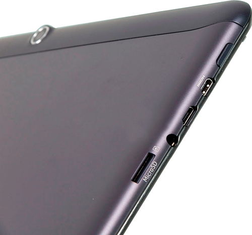 ДизайнУ планшета привлекательный внешний вид. Его крышка – алюминиевая, остальное покрытие является пластиковым. Такое сочетание материалов позволяет говорить о прочности устройства, а значит, о его надежности. Кстати, цветовые вариации ограничиваются лишь белым и черным цветами. Белый цвет в данном случае не является марким, но он не такой практичный, как черный, поэтому мы остановились на комплектации с темной расцветкой. Ориентация устройства альбомная, но, само собой, в вертикальном положении его также можно и нужно использовать. Заднюю панель украшает несколько элементов, в частности, веб-камера, два небольших динамика, а также фирменный логотип, расположенный четко посередине. Спереди все так, как и в любом другом планшете: в верхней части рамки виднеется глазок веб-камеры, в нижней – надпись в виде упоминания о производителе. Практически все интерфейсы разместились на левой грани. Качество сборки таблетки хорошее, ее корпус достаточно жесткий, благодаря чему не прогибается, даже если умышленно на него надавить. Что до габаритов, то они получились такими: длина составляет 256 мм, ширина – 171 мм, а толщина – 8.9 мм. С весом не все так однозначно, ведь он равен 520 г. С одной стороны, полкилограмма – не очень много, но с другой, держать гаджет на весу долго не получится, рука все-таки будет уставать. Дисплей, звук и веб-камераПо периметру экран окружен средней толщины рамками, кроме того, от возможных механических повреждений его защищает стекло Gorilla Glass. Также производитель акцентирует внимание на специальном покрытии, благодаря которому отпечатков пальцев остается меньше, плюс избавляться от них проще. Дисплей большой, его диагональ составляет 10.1 дюйма, а плотность пикселей – 149 ppi. Разрешение экрана – 1280х800 точек, не очень много, но что поделаешь. Справедливости ради, отметим, что существуют модификации с Full HD-разрешением, но стоимость таких моделей, конечно же, будет выше. Матрица TFT представляет собой нечто среднее между IPS и TN, поэтому углы обзора находятся на приемлемом уровне. Антибликовые способности экрана радуют, ведь с планшетом можно работать даже в солнечную погоду без ущерба качеству. Максимальная яркость подсветки достигает практически 400 кд/м2, а контрастность – 507:1. В целом, цветопередача неплохая, а качество картинки заслуживает только положительных эпитетов. И хоть до идеальных параметров он не дотягивает, но для ежедневной работы того, что есть, более чем достаточно. Заметим, что чувствительность сенсора – на высоте, одного нажатия без повторений хватает для выполнения команды. Дополнительный плюс – экран распознает до 10 одновременных касаний. Конечно, не стоит рассчитывать на то, что планшет будет демонстрировать идеальное качество звука. Акустика представлена двумя динамиками на днище и, несмотря на заявленную технологию Dolby, звук на выходе получается весьма посредственным. Низкие частоты отсутствуют, впрочем, на максимуме динамики не хрипят, и на том спасибо. В устройстве предусмотрено две камеры. Фронтальная вебка имеет не слишком большое разрешение – 2 Мп, у тыловой оно повыше, а именно 5 Мп. Пользователей, которые надеялись получить планшет для выполнения качественной фотосъемки, мы разочаруем. Обе камеры годятся лишь для видеозвонков по Skype, основной можно еще попробовать сделать быстрое фото, где вы