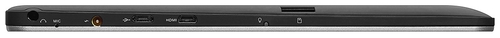 ДизайнРазумеется, сегодня на прилавках магазинов можно встретить и недорогие модели с металлическим корпусом, однако в случае с Lenovo Miix 300 10 используется старый-добрый пластик. Впрочем, это не означает, что конструкция ненадежная и некачественная, по большому счету, с этим у гаджета нет проблем. ![]() Крышка выполнена в графитовом цвете, очень универсальном и практичном. В верхнем левом углу ее украшает логотип компании с зеркальной поверхностью, внизу – две небольшие решетки динамиков по углам. Кроме того, крышка располагает глазком веб-камеры, а также двумя физическими кнопками, но о них позже. ![]() Что касается планшетной части с лицевой стороны, то о ней и сказать особо нечего. Никаких «меток» или логотипов, которые бы указывали на связь с брендом, здесь нет. Зато имеется в меру широкая рамка, а также фронтальная вебка на верхней грани. В нижней части планшета предусмотрен специальный разъем, а также два фиксатора для присоединения док-клавиатуры. Кстати, в «собранном» виде сзади ноутбука образовывается небольшая стойка, которая, впрочем, не мешает транспортировке и эксплуатации. ![]() Док-клавиатура производит приятное первое впечатление, у нее большие клавиши и огромный тачпад в придачу. Вместе с клавиатурным блоком в комплекте значится и обложка, задача которой – защита от механических повреждений, пыли и царапин. У нее прорезиненная поверхность, приятная тактильно и симпатичная внешне, а также темно-серый цвет, неброский и практичный. Должное внимание инженеры уделили качеству сборки: в конструкции отсутствуют зазоры, все детали спроектированы и подогнаны должным образом. Правда, стоит учесть один нюанс: пластиковый корпус начинает потрескивать при скручивании. Впрочем, сомневаемся, что кто-то будет целенаправленно этим заниматься, а в повседневной эксплуатации данный недостаток не ощутим. Кстати, не забудем отметить и габаритность планшетного ПК: так, его размеры составляют 247х173х9.6 мм, вес – 615 г. А вот размеры и вес клавиатуры составляют 246x173х18.7 мм и 560 граммов соответственно. Как видите, тест на мобильность устройство прошло, ведь оно сравнительно легкое и компактное. ![]() Дисплей, звук и веб-камераИ хоть Lenovo Miix 300 10 – весьма небольшой и легковесный девайс, при необходимости он может заменить ваш привычный ноутбук. Это отнюдь не пустые слова, т.к. у гаджета есть все предпосылки. Например, 10.1-дюймовый экран с разрешением 1280х800 пикселей. Хоть данный показатель не из разряда высоких, тем не менее, для ежедневных задач его хватит. Да и запас яркости, не превышающий 300 кд/м2, подойдет при использовании устройства на улице. Правда, глянцевая поверхность дисплея в совокупности с солнечными лучами ощутимо ограничат эксплуатацию таблетки в ясную погоду. С другой стороны, если работать с ней в тени, особого дискомфорта не ощущается. ![]() К слову, здесь используется IPS-матрица, поэтому пользователь может просматривать изображения под любым углом, не опасаясь инверсии. Более того, сенсорный экран поддерживает 5-пальцевый мультитач, оперативно отвечает на команды, а что еще нужно для качественного веб-серфинга? ![]() Инженеры снабдили девайс двумя динамиками, расположенными на крышке планшетной части. Вне всякого сомнения, лучше, когда акустика направлена на пользователя, такое местоположение спасает даже не очень хорошее звучание. В нашем 