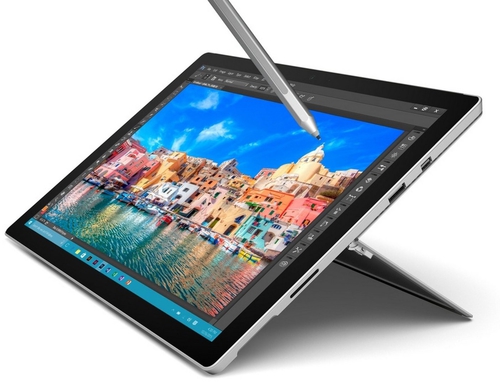 Комплект поставкиКлавиатура, как это ни странно, вместе с планшетом не продается. Если в ней есть необходимость – а она понадобится 100% – придется дополнительно потратиться. Зато в комплекте поставки предусмотрен фирменный стилус Surface Pen и зарядное устройство. Все составляющие, вместе с таблеткой, аккуратно и компактно упакованы в узкую коробку премиального вида. ДизайнMicrosoft Surface Pro 4 чрезвычайно похож на своего предшественника третьей генерации, правда, дисплей чуть увеличили с 12 до 12.3 дюймов. Тем не менее, на общих размерах корпуса устройства это не отразилось – длина и ширина остались такие же (292х201.5 мм), зато уменьшилась толщина до 8.5 мм. Весит планшет всего 786 г, что чрезвычайно скромно для его габаритов. ![]() В целом, новое поколение Surface получило узнаваемый дизайн в лучших традициях Microsoft, то есть выраженно прямоугольный корпус с отвесными скосами. Дисплейная часть таблетки защищена закаленным стеклом, спинка выполнена из магниевого сплава серебристого цвета. Тут же расположена уже знакомая встроенная подставка с крупным логотипом Microsoft и глазок веб-камеры. Кстати, угол раскрытия подставки достаточно широкий, обеспечивающий хорошую устойчивость планшета на ровной и твердой поверхности. Правда, на коленях такой трюк уже вряд ли пройдет – лучше перестраиваться в режим планшета. ![]() Безусловно, что качество использованных материалов, что сборка, – на самом высоком уровне, хотя по-другому и быть не может, ведь это устройство премиум-сегмента, которое должно соответствовать высоким требованиям профессионалов. Несколько слов стоит сказать об оригинальной клавиатуре Type Cover, которая одновременно выполняет и роль защитного чехла. Аксессуар имеет прорезиненную, приятную на ощупь поверхность, он довольно тонкий, но на жесткой основе. В закрытом положении Type Cover контактирует с дисплеем, предупреждая возможные повреждения, что очень удобно. Крепится клавиатура магнитной площадкой, собственного аккумулятора не имеет. ![]() Дисплей, звук, веб-камераПрофессиональный планшет Microsoft Surface Pro 4 оснащен 12.3-дюймовым дисплеем с разрешением 2736х1824 пикселей и соотношением сторон 3:2. Также здесь предусмотрена матрица IPS, отвечающая за широту углов обзора и улучшающая цветопередачу. Последняя здесь просто прекрасная, что доказывает 100%-ый охват пространства sRGB. Если говорить о других характеристиках, то максимальный уровень яркости составляет 367 кд/м2 при показателях контрастности 1:1167, да и подсветка дисплея равномерная, не выделяет темные или светлые зоны по всей площади экрана. Чувствительность сенсорного дисплея идеальна, поддерживается 10-пальцевый мультитач. Иными словами, экран в данном планшете превосходный, полностью соответствует высокому статусу дорогого профессионального гаджета. ![]() Фронтальные стереодинамики расположены в Surface Pro 4 справа и слева на дисплейной рамке. Они оформлены в узкую перфорированную щель и направлены прямиком на пользователя. Звук в планшете на хорошем уровне – насыщенный и достаточно громкий. Тем не менее, низкие частоты не столь выражены, поэтому, для ценителей качественного звучания лучше использовать наушники или внешние колонки. ![]() Фронтальная веб-камера осталась с таким же разрешением, что и в предыдущих моделях Surface – 5 Мп. Рядом с глазком основной расположена инфракрасная камера, которая используетс