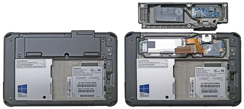 ДизайнВстречают, как говорится, по одежке, вот и мы не сделали исключения для Panasonic Toughpad FZ-M1, тем более, его внешний вид заслуживает внимания. В качестве материала производитель использует пластик в сочетании с ансамблем из черного и серебристого цвета. ![]() Сразу же вызывает интерес задняя часть планшета, настолько она пестрит разнообразными деталями. В частности, там есть крепления для дополнительных модулей, которые можно настроить под свои потребности. Так, конкретно наша модификация оснащена считывателем штрих-кодов, а также умеет работать с SmartCard. В правой части крышки имеется веб-камера, динамик, также сзади предусмотрен отсек для дополнительного аккумулятора. Учитывая наличие всех «примочек», неудивительно, что планшетный ПК получился, скажем так, нехуденьким. Его габариты такие: 203х132х18 мм, а вот вес приятно удивил – 540 г. ![]() Лицевая сторона гаджета, как и задняя, выглядит весьма необычно. Экран окружает очень широкая рамка серебристого цвета, в верхней части которой – фронтальная веб-камера с индикатором и сенсором освещенности, а вот справа от дисплея – три индикатора (работа накопителя, самого планшета и состояние заряда батареи). Однако это еще не все, ведь вокруг рамки есть чехол, черный, из прорезиненного пластика. Вообще дизайн девайса, конечно, на любителя, он очень специфичный, но в традиционном стиле Panasonic. К слову, нам он больше напомнил детскую игрушку, а не продвинутое упрочненное устройство, то есть, должного впечатления планшет не произвел. ![]() Производитель делает огромный акцент на защищенности таблетки, поэтому оставить данный нюанс без внимания мы не могли. Итак, Panasonic Toughpad FZ-M1 соответствует стандарту MIL-STD-810G, кроме того, ему присвоен класс защиты IP от пыли и воды. Корпус планшета укомплектован важными деталями, что и позволяет говорить о его невероятной прочности. Судите сами: внутренняя рамка сделана из магниевого сплава, который надежно защищает внутренние компоненты при ударе. В углах устройства имеется эластомер, действие которого направлено на уменьшение силы удара при падении, соответственно, в этой ситуации дисплей надежно защищен. Идем дальше: стекло химически упрочнено и приклеено прямо к экрану, благодаря чему улучшается видимость изображения, а сам дисплей имеет дополнительную защиту от ударов и вибраций. Само собой, и качество сборки описываемого гаджета на высоте, после описанных имеющихся фишек сомневаться в этом не приходится. Дисплей, звук и веб-камераУ новинки 7-дюймовый экран с достаточно низким разрешением – 1280х800 точек с плотностью пикселей 216 ppi и соотношением сторон 16:10. С одной стороны, очень странно видеть такое разрешение в планшете, стоимостью несколько тысяч долларов. С другой стороны, такой ход весьма разумный: так как у гаджета диагональ всего 7 дюймов, более высокое разрешение не сыграло бы огромной роли, зато сказалось бы на энергопотреблении. ![]() А вот с чем у дисплея нет проблем, так это с яркостью. Ее средний показатель составляет примерно 530 кд/м2, и это отменный результат! Контрастность – 729:1, что также неплохо, уровень черного – 0.77 кд/м2. Поверхность экрана антибликовая, поэтому устройством можно и нужно пользоваться на открытом воздухе. Дисплей получил матрицу TFT IPS, соответственно, явных нареканий на углы обзора у нас нет и быть не может. Кстати, сенсорный экран поддер