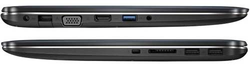 ДизайнНоутбук оформлен не вызывающе, а, наоборот, крайне элегантно. Темная расцветка дополняется концентрическим узором, а в центре крышки, скругленной по краям, располагается логотип компании. Гармонично смотрится и серебристая рабочая поверхность. К тому же на ней, в отличие от внешней панели, не так сильно видны отпечатки пальцев. Кстати, есть два варианта расцветки, в которых представлен ASUS X302UJ: полностью белая и черная с серебристым. ![]() Интерьер ноутбука выглядит в большей степени по-деловому, причем не только благодаря спокойной цветовой гамме. Здесь нет ничего того, что отвлекает от работы, например, броских и чересчур оригинальных деталей. По факту видим клавиатуру с тачпадом, расположенные на относительно просторной и гладкой рабочей поверхности. Что касается днища, то здесь находится небольшое вентиляционное отверстие; слот, под которым спрятаны модули памяти; динамики акустической системы, а также крупные прорезиненные ножки, позволяющие ноутбуку не скользить по поверхности стола. ![]() Если говорить о материалах, то в корпусе есть как пластик, так и алюминий. Панели ноутбука прочные, не поддаются деформации. Вдобавок сборка не вызывает недовольства, детали подогнаны хорошо, скрутить устройство не получится. Учитывая вышесказанное, а также то, что у лэптопа стандартные габариты 328x234x25.6 мм и небольшой вес 1.59 кг, ASUS X302UJ можно не только использовать дома или в офисе, но и зачастую брать с собой в поездки. Дисплей, звук, веб-камераНоутбук комплектуется 13.3-дюймовым дисплеем с разрешением 1920х1080 пикселей и соотношением сторон 16:9. Возможно, шрифт на экране покажется вам мелким, однако его всегда можно изменить. Также производитель предусмотрел качественную IPS-матрицу, которая обеспечит широкие углы обзора, а также насыщенные цвета. Кроме этого, плюсом можно считать матовую поверхность, с ней вы сможете работать более комфортно, не переживая за отражения и блики. В общем, дисплей одинаково хорош для офисных и мультимедийных задач. ![]() Поддержка SonicMaster, а также два неплохих стереодинамика позволят использовать ноутбук в качестве средства для просмотра видео или прослушивания аудио. Конечно, это не домашний кинотеатр, тем не менее, лэптоп способен обеспечить относительно громкое и качественное звучание. В случае, если уровень воспроизведения вас не устроит, всегда можно подключить наушники. ![]() На рамке дисплея находится VGA-камера. Ее небольшое разрешение 0.3 Мп не позволит делать четкие снимки, хотя для видеоконференций вебки будет вполне достаточно. ![]() Клавиатура и тачпадОстровная клавиатура ноутбука не потребует привыкания, т.к. в ней все стандартно и удобно. Предусмотренное между клавишами расстояние снизит до минимума ошибочные нажатия, а четкая маркировка и средний размер основных кнопок позволят бегло набирать тексты. Дискомфорт может возникнуть лишь при управлении стрелками, т.к. производитель их слишком уменьшил. В целом, если нужно подолгу набирать тексты, то клавиатура ноутбука ASUS X302UJ не станет помехой. ![]() Пользоваться сенсорным манипулятором не менее удобно. Отзывчивость тачпада хорошая, да и относительно просторная поверхность позволяет свободно позиционировать, выполнять различные жесты, в том числе и мультитач. Например, масштабирование, вертикальный и горизонтальный скроллинг, перетаскивание двумя п