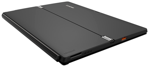 Еще немного деталей экстерьера: крышка новинки доступна в двух цветах: черном (Black) и бежевом (Gold). Помимо шарниров, на ней имеются еще некоторые элементы: тыловая камера в верхней части, а также логотип компании чуть ниже. Вместе с планшетом в комплект входит и док-клавиатура, которая дополнительно выполняет функцию обложки. С одной стороны она сделана из тактильно приятного кожзама, а с другой – из прорезиненного пластика. Подключение док-клавиатуры к планшету осуществляется современным методом – с помощью магнитов.