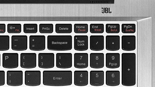 ДизайнНоутбук выпускается в двух расцветках: белой и черной. В обоих случаях корпус пластиковый, но рабочая область выполнена из алюминия. Крышка матовая и маркая, по крайней мере, отпечатки пальцев она собирает невероятно быстро, так что протирать поверхность придется очень часто. На внешней поверхности совсем немного деталей, точнее, только одна: логотип компании в левом верхнем углу, красиво переливающийся серебристым цветом. ![]() В нижней части экрана рамка заметно шире, чем на остальных трех сторонах. Сам по себе дисплей имеет довольно обычный дизайн, ничем не примечательный. На верхней рамке имеется фронтальная веб-камера, напротив нее – мини-логотип Lenovo. Крышка соединяется с основанием посредством одного продолговатого шарнира. Тот, к слову, достаточно крепкий, и открыть ноутбук получится только двумя руками. Клавиатура выглядит удобной, в принципе, обычно данный элемент ноутбуков Lenovo не разочаровывает. ![]() Вообще хотелось бы отметить хорошее качество сборки Lenovo IdeaPad 500-15ISK. Тандем пластика и алюминия весьма удачный: благодаря первому устройство является легким, да и на стоимости это сказывается положительным образом. Ну, а металлическая подладонная поверхность остается прохладной даже под нагрузкой. В продолжение о легковесности девайса отметим его размеры: 384х265х25 мм, вес – 2.33 кг. ![]() Дисплей, звук и веб-камераНоутбук располагает 15.6-дюймовым экраном с разрешением Full HD и антибликовой поверхностью. Дисплей не может похвастаться высоким уровнем яркости – максимум 220 кд/м2. Да и цветопередача не самая отменная, при просмотре видео или фото заметно, что картинке не хватает насыщенности и реалистичности. Кроме того, при отклонении экрана цвета заметно блекнут, стоит отклонить его буквально на 40 градусов, и разница становится очевидной. ![]() Соответствие гамме sRGB составляет всего 61%, поэтому о выполнении такой скрупулезной работы, как профессиональная обработка фотографий, не может быть и речи. В то же время радует, что с матовым экраном можно нормально работать на улице, правда, прямых солнечных лучей стоит все же избегать, иначе есть риск ничего не увидеть из-за бликов. ![]() Звучание ноутбука откровенно порадовало! Пожалуй, весь секрет в динамиках от JBL и технологии Dolby Home Theater. Если оставить настройки по умолчанию, акустика может показаться ничем не примечательной. Однако при желании пользователь может «пошуршать» в эквалайзере, выбрав тот или иной режим, тем самым, значительно улучшив настройки звучания. В нашей модификации – веб-камера с разрешением 1 Мп. Она отлично подходит для бесед по Skype, но фотографии с ее помощью сделать затруднительно, по крайней мере, надлежащего качества. Опционально можно получить 3D-камеру Intel RealSense. Одна из ее возможностей – функция Windows Hallo – новейший метод авторизации владельца ноутбука. ![]() Клавиатура и тачпадНапомним, что подладонная поверхность – единственный элемент в ноутбуке, изготовленный из алюминия. Она выполнена в серебристом цвете, под стать корпусу. Клавиатурные кнопки – черные, а вот маркировка на них выполнена в белом цвете. Сам блок выполнен по островному типу и немного утоплен внутрь. Клавиши в нижней части скруглены, по такой форме «улыбки» Lenovo уже легко узнается среди прочих производителей. Клавиатура хорошо сконструирована, во время работы она не прогибается, а запястьям в