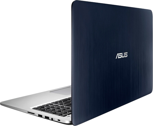 ДизайнПроизводитель объединил в корпусе ASUS K501LB два наиболее универсальных материала – алюминий и пластик. Металлическими являются крышка и подладонная поверхность, из пластика – рамка вокруг экрана и днище. Благодаря такой комбинации лэптоп получился довольно легким (2 кг) и привлекательным. Его крышка сделана в темно-синем цвете, посередине – логотип компании в зеркальной окантовке. Поверхность ноутбука матовая и склонная к быстрому появлению отпечатков пальцев, от которых, впрочем, достаточно просто избавиться. ![]() В раскрытом виде лэптоп выглядит вполне органично, сочетаясь с внешней огранкой и ничуть не выбиваясь из заданного производителем направления. Можно отметить элегантный дизайн, который совсем не уступает даже представителям бизнес-сегмента. Рабочая зона выполнена в сером цвете, тогда как клавиши – контрастно черные. Верх и низ девайса соединяются между собой продолговатой довольно широкой шарнирной петлей. Она достаточно тугая, по крайней мере, для открытия крышки нужно задействовать обе руки. ![]() Проапгрейдить ноутбук возможно, речь идет об увеличении объема ОЗУ и замене жесткого диска на более емкий, а то и вовсе установке SSD. Так как о весе девайса мы уже упоминали, настала очередь обратиться к его размерам. К счастью, они не разочаровывают: 382х255х22 мм, то есть ASUS K501LB спокойно можно брать с собой в командировку, на работу; он без особых усилий поместится как в рюкзак, так и в женскую сумочку. ![]() Дисплей, звук и веб-камера15.6-дюймовый экран имеет разрешение 1920х1080 пикселей и матовую поверхность. Последнее означает, что работать с ноутбуком можно и на улице, и возле окошка в помещении, но злоупотреблять прямыми солнечными лучами не стоит, все же они способны значительно ухудшить качество изображения. Яркость и контрастность – не сказать, чтобы «вау», однако если не использовать ноутбук, скажем, для работы с фотографиями, то его потенциала должно быть достаточно. Отметим наличие встроенной утилиты ASUS Splendid, а также технологию ASUS Eye Care, которая способствует снижению вредного воздействия синего цвета на зрение. ![]() Стоит добавить, что здесь используется матрица TN, углы обзора – неширокие, по горизонтали лучше, чем по вертикали. Ни в одной из модификаций не поддерживается сенсорный ввод информации. Зато в каждой присутствует VGA-веб-камера, без которой невозможно представить видеообщение. Делать снимки вебка тоже может, однако не стоит рассчитывать на высокую детализацию. ![]() На днище лэптопа, с правой и левой стороны, присутствует по одному динамику SonicMaster. Звук неплох, однако из-за местоположения динамиков звучание кажется несколько приглушенным. Акустических возможностей девайса хватит на комфортное прослушивание музыки и просмотр фильмов в небольшой комнате. Правда, в условиях шума, а также для улучшения качества звука предпочтительнее надевать наушники. Клавиатура и тачпадКлавиатура островного типа имеет стандартную раскладку. Она полноразмерная, у клавиш квадратная форма и белая маркировка. Сами кнопки черного цвета, а клавиатура немного утоплена в поверхность. Кстати, даже если набирать текст очень активно, прогибания не возникают, и данный факт определенно греет душу. ![]() «Пройдемся» по так называемым функциональным клавишам, которые во время работы пользователь использует чаще всего. Так, имеем однор