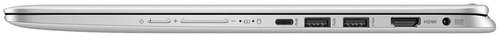 ДизайнВ качестве материала для корпуса используется алюминий, что в совокупности с серебристым цветом делает девайс очень стильным. Он подходит к любому образу и в любой ситуации, не выглядит «кричащим», но в то же время не остается незамеченным. Крышка имеет шлифованную текстуру, она матовая, немного шершавая на ощупь. В середине – зеркальный логотип компании, других элементов не наблюдается. ![]() Открыв ноутбук, наблюдаем следующее: верхняя половина корпуса полностью черного цвета, рамки дисплея неширокие. Сверху – веб-камера, напротив нее – еще один лого бренда. Верх и низ корпуса соединены двумя хромированными шарнирами, которые по виду напоминают шайбочки, и гармонично вписываются в дизайн. ![]() Шарнирный механизм сконструирован таким образом, что устройство может работать в одном из четырех режимов: ноутбук, планшет, презентация и консоль. Переход из одного режима в другой не является сложной задачей: просто установите крышку под нужным углом и зафиксируйте петли. Режим «ноутбук» идеален для решения задач повседневного характера, вроде веб-серфинга, работы с документами и т.п. Режим «планшет» удобно использовать для игр, а промежуточные положения «консоль» и «презентация» – для демонстрации слайд-шоу, просмотра фильмов, и многих других вариантов. ![]() Один из важнейших факторов, которым руководствуются многие при выборе девайса – его мобильность. Можно сказать, что ASUS Q504UA «стройный», ведь его толщина составляет всего 18 мм. Длина и ширина – 381 и 254 мм соответственно, вес – 2.29 кг. Как вы понимаете, идея использовать режим «планшет» на весу отпадает сразу, потому что руки устанут очень быстро. Что касается качества сборки, то к этому параметру нет никаких претензий: корпус сделан очень качественно, не прогибается, не трещит и не деформируется при трансформации. ![]() Дисплей, звук и веб-камераНоутбук наделен 15.6-дюймовым дисплеем с разрешением Full HD и соотношением сторон 16:9. На выходе имеем четкую красивую картинку, с хорошей яркостью и контрастностью. У экрана матовое покрытие, поэтому трансформер можно использовать и на улице, и возле окна. Правда, под прямыми солнечными лучами все же лучше не находиться, т.к. картинка будет не такой насыщенной и реалистичной. ![]() К счастью, TN-матрица уже редко используется, и современные устройства выпускаются преимущественно с IPS-дисплеем, собственно, это же касается и ASUS Q504UA. Следовательно, углы обзора широкие: независимо от того, в каком положении будет находиться девайс, и с какого ракурса вы будете смотреть на экран, изображение на нем будет неизменно четким, без инверсий. Емкостный экран поддерживает 10-пальцевый мультитач, команды выполняются без промедления, чему способствует отзывчивый сенсор. ![]() Два стереодинамика Bang & Olufsen расположены на днище устройства, ближе к боковым граням. Так как устройство не претендует на звание мультимедийного, то требовать от них каких-то супервозможностей или эффектов нет смысла. Басов явно не хватает, на максимуме звук получается не очень громким. В зависимости от положения, например, в режиме «планшет», когда крышка накрывает динамики, звучание ухудшается, становясь приглушенным. Впрочем, для просмотра видео и прослушивания музыки в качестве «фона» акустических данных устройства должно быть достаточно. В арсенале ноутбука имеется веб-камера со скром