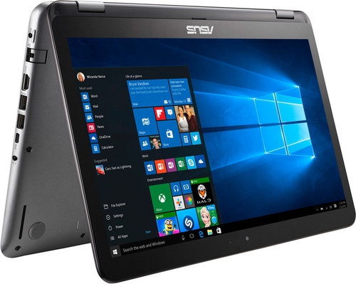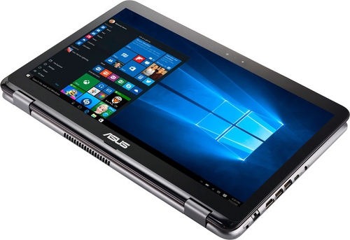 ДизайнРазмеры конвертируемого устройства следующие: 378х253х22.5 мм, вес 2.2 кг. Из-за предусмотренной возможности трансформации и сенсорного экрана устройство не может похвастаться легкостью или тонкостью корпуса, этот факт следует учесть, если вы планируете использовать его вне помещения. ![]() ASUS VivoBook Flip TP501UA изготовлен в очень знакомом дизайне, встречающемся во многих ноутбуках: посудите сами, сочетание черного и серебристого, отсутствие дизайнерских элементов. С первого взгляда даже трудно понять, что данный лэптоп может откидываться на 360 градусов, превращаясь, фактически, в крупный планшет. Итак, на черной крышке, выполненной из металла, красуется логотип компании, дуэт ей составляет рабочая поверхность серебристого цвета, а также пластиковое днище в аналогичной черной расцветке и с матовым покрытием. Все минимально, без изысков. ![]() Шарнирные петли устройства достаточно жесткие, чтобы уверенно удерживать дисплей в установленном положении. Вместе с тем, они совершенно не препятствуют переходу от одного режима в другой, если вы делаете это обеими руками. ![]() На нижней панели ноутбука можно найти четыре резиновые ножки для опоры, решетку воздухозаборника и пару прорезей для динамиков – ничего необычного или лишнего. ![]() Дисплей, звук, веб-камераИтак, в образе VivoBook Flip TP501UA мы получаем 15.6-дюймый дисплей с разрешением 1366х768 пикселей и сенсорным покрытием. Правда, последний пункт не слишком гармонично сочетается с глянцевостью экрана, ведь в таком случае не удастся избежать огромного количества отпечатков пальцев! Наличие TN-матрицы выглядит более чем посредственно, по сравнению с IPS-панелями, которые широко используются в современных ноутбуках, поэтому мы можем констатировать ограниченные углы обзора. Это в особенности печально, ведь трансформируемый лэптоп меняет положение экрана на 360 градусов, вынуждая пользователя каждый раз подстраиваться по-разному. В то же время данный дисплей демонстрирует достаточно яркие и сочные цвета; заслуживает высокой оценки и качество тачскрина – он работает хорошо, корректно распознавая касания и отвечая соответствующим действием. ![]() Два стереодинамика мощностью 1.6 Вт при поддержке технологии ASUS SonicMaster расположены на днище корпуса, ближе к передней грани. Максимальная громкость звука достаточно приличная, он объемный, с явными басами. Тем не менее, мы можем говорить только о среднем качестве акустики, что, собственно, характерно для мобильных устройств. ![]() Также стоит отметить весьма посредственную работу камеры VGA, расположенную на рамке в верхней части экрана. Даже при хорошем освещении изображения будут заметно зернистыми. ![]() Клавиатура и тачпадОстровная клавиатура в лэптопе занимает достаточно много места на рабочей поверхности, и это можно объяснить не только очень приличным расстоянием между клавишами, но и наличием цифрового блока. Кнопки достаточно объемные, с хорошей обратной связью. Раскладка стандартная и комфортная для пользователя, [Enter] однорядная, а стрелочный блок, как это часто бывает, чересчур ужат по высоте. В целом, клавиатура трансформируемого ASUS VivoBook Flip TP501UA удобна в эксплуатации, кстати, в режиме планшета она блокируется автоматически, исключая вероятность нажатий по неосторожности. ![]() А вот тачпад здесь весьма компактен. Он гладкий, приятный на ощупь, к тому ж