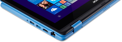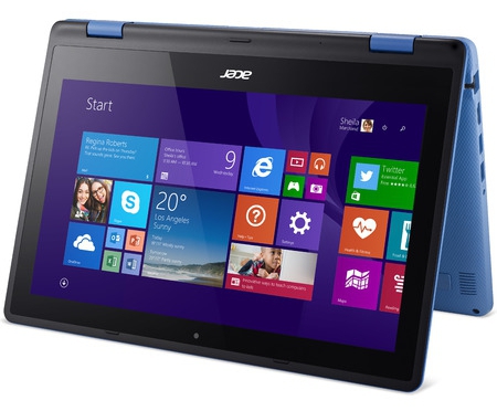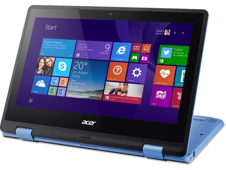 ДизайнТакой ноутбук легко поместится в сумку, ведь его размеры составляют всего 298х211х20.9 мм. Правда, вес достаточно большой, как для 11-дюймовой модели – 1.58 кг. Корпус Acer Aspire R3-131T имеет четкие контуры со скругленными углами и равномерную толщину, за счет чего выглядит немного громоздко. Устройство выполнено из текстурированного пластика в синем цвете, в продаже представлена также модификация в белой расцветке. Матовое покрытие предотвращает появление отпечатков пальцев, ноутбук комфортен в эксплуатации, не скользит в руках. ![]() Главной особенностью Acer Aspire R3-131T является возможность конвертации. Достаточно тугие петли предлагают развернуть экран на 360 градусов, обеспечивая несколько вариантов установки: в виде стенда, презентации, а также планшета. Одной рукой открыть крышку практически не представляется возможным, так как ноутбук небольшой и сравнительно легкий. В вопросе качества сборки нет ничего примечательного – кое-где пластик прогибается, в положении закрытого ноутбука просматриваются щели. ![]() Днище не перегружено функциональными элементами – опорные ножки и сетки двух динамиков. Панель фиксируется многочисленными винтами, которые расположены в три ряда. ![]() Дисплей, звук, веб-камераВ Acer Aspire R3-131T установлен 11.6-дюймовый экран с поддержкой сенсорного управления и разрешением 1366х768 пикселей. Он достаточно контрастный и яркий, однако имеет чрезвычайно ограниченные углы обзора, за счет чего при смене положения дисплея можно наблюдать резкую инверсию цветов. Невысокое разрешение позволяет рассмотреть отдельные пиксели, что также не добавляет комфорта в работе. Вместе с тем, экран защищен прочным стеклом Corning Gorilla Glass, демонстрирует хорошую чувствительность и уменьшенное количество бликов, несмотря на глянцевое покрытие. ![]() Оба стереодинамика имеют выход на днище корпуса. Качество звучания ниже среднего – абсолютное отсутствие басов и перебор высоких частот делают его совершенно ненатуральным. Впрочем, всегда можно воспользоваться наушниками, они частично решают проблему. Максимальная громкость оставляет желать лучшего. Кстати, хотелось бы отметить весьма неудобное расположение динамиков, ведь в режиме ноутбука они будут закрыты поверхностью стола, а в форме планшета – самим корпусом устройства. ![]() Объектив 1-Мп веб-камеры расположен на привычном для ноутбуков месте – на верхней рамке дисплея. В работе она посредственная и годится лишь для обеспечения видеосвязи. ![]() Клавиатура и тачпадЕсли корпус девайса приятного голубого цвета, то изнутри вся рабочая поверхность в контраст выполнена в черном. Это создает некий особый шарм, несмотря на явно недорогой вид устройства. И клавиатура с маркировкой ярко-белого цвета вписывается в данный образ весьма гармонично. Она островного типа, с традиционно уменьшенными функциональными и курсорными кнопками. Клавиши громко клацают при печатании, имеют сравнительно короткий ход и приятную на ощупь поверхность. В процессе преобразования лэптопа в другие позиции клавиатура автоматически деактивируется, так что не нужно будет волноваться о случайных нажатиях. В целом, она достаточно удобна и притоплена в корпус ровно настолько, чтобы не царапать дисплей и не контактировать с поверхностью стола в режиме стенда. ![]() Тачпад немного сдвинут влево, он имеет достаточно крупны