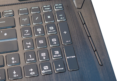ДизайнMSI GT73VR 6RE Titan выглядит как большинство геймерских лэптопов. В его дизайне бок о бок идут черный и красный цвет. Так, на крышке можно увидеть пару красных вертикальных полос, а между ними – такого же цвета подсвечивающийся дракон. Сзади виднеются вентиляционные решетки с красной окантовкой, такое решение смотрится интересно и симпатично. К слову, у нас даже возникли ассоциации со спортивным автомобилем. Вернемся к крышке: она выполнена из матового алюминия черного цвета, немаркая и практичная в работе. ![]() Рамки дисплея сделаны из пластика, порадовала их небольшая толщина. Над экраном виднеется объектив веб-камеры, под ним – логотип компании. Верхнюю и нижнюю часть корпуса соединяет продолговатый шарнир. Он в меру тугой, поднять крышку получится только двумя руками. Но в этом определенно есть и плюс – она прочно держится в заданном положении, независимо от угла наклона. На рабочей поверхности довольно компактно разместилась клавиатура. Справа от нее – вертикальный ряд дополнительных кнопок, у каждой из которых – определенная функция. Под клавиатурой находится большой тачпад, впрочем, вряд ли он вообще пригодится геймеру. Интерфейсов по-настоящему много, они равномерно расположены на гранях корпуса. ![]() Назвать MSI GT73VR 6RE Titan мобильным было бы крайне неосмотрительно. Устройство из разряда тех, что поставил на стол и передвигаешь только, чтобы пыль протереть. Его вес – 4.1 кг, размеры – 428х287х49 мм. Качество сборки – отличное, во всяком случае, устройство не скручивается, корпус не издает подозрительных звуков даже при надавливании, люфтов также замечено не было. ![]() Дисплей, звук и веб-камера17.3-дюймовый экран имеет Full HD-разрешение (127 ppi). У него приличные показатели яркости и контрастности: 315 кд/м2 и 1365:1 соответственно. Соответствие цветовому пространству sRGB составляет 100%, AdobeRGB чуть ниже – 76%. Это означает, что дисплей можно использовать даже в профессиональных целях, например, для редактирования фотографий или видеофайлов. ![]() Матрица IPS позволяет говорить о широких углах обзора, что свидетельствует об отсутствии инверсии: картинка под любым ракурсом не теряет в качестве. Вдобавок у экрана матовая поверхность, поэтому играть можно даже у окна в солнечную погоду. Дисплей не сенсорный. ![]() Акустика ноутбука (Dynaudio) оказалась вполне приличной. У нее относительно сбалансированное звучание, хоть и ощущается небольшое искажение высоких частот. С басами ситуация обстоит лучше, во всяком случае, они превосходят многих потенциальных соперников (например, ASUS G752VS). Есть и сабвуфер мощностью 5 Вт, наличие которого, несомненно, сказывается на звуке самым положительным образом. Над экраном невозможно не заметить веб-камеру, ее разрешение – 1 Мп. Чудес от вебки ждать не стоит, даже селфи, сделанное с ее помощью, получится нечетким. Но со своей прямой «обязанностью» – видеоразговорами – камера справляется на ура. Клавиатура и тачпадПодладонная поверхность сделана из алюминия и, к сожалению, она активно собирает пыль и отпечатки пальцев. Большую часть пространства занимает, конечно же, клавиатурный блок. Клавиатура SteelSeries выполнена по островному принципу, таким образом, вокруг каждой кнопки достаточно пространства, чтобы избежать ошибочных касаний. Клавиши квадратные, с белой маркировкой. Нажатие кнопок – мягкое и очень тихое. Конечно же, ес
