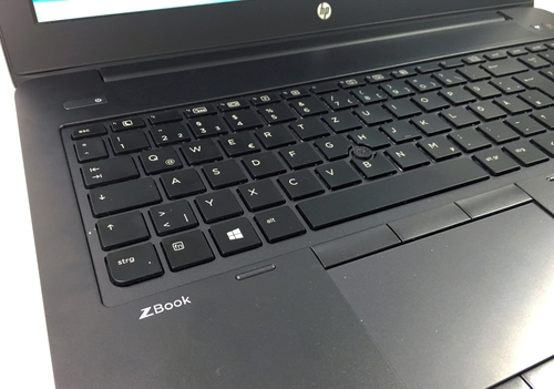 HP ZBook 15 G3 наделен клавиатурой островного типа. У нее не очень большие клавиши квадратной формы, с белой маркировкой. Безусловно, не обошлось без нампада, ведь для многих пользователей он является незаменимым элементом. Кнопки имеют короткий ход, тихо срабатывают, с хорошей отдачей. Имеется двухуровневая подсветка, которой можно управлять при помощи комбинации клавиш [Fn]+[F3]. Клавиатурный блок не прогибается, даже во время интенсивного набора текста.