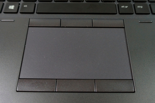 Прочностью отличается и шарнирный механизм лэптопа, который представлен одной большой петлей. Несмотря на то, что крышку устройства можно поднять одной рукой, она крепко фиксирует верхнюю часть ноутбука в заданном положении. Максимальный угол раскрытия составляет 150 градусов. HP ZBook 15 G3 соответствует стандарту MIL-STD 810G, а его клавиатура является водонепроницаемой. Рамка дисплея выполнена из матового пластика, под стать антибликовому экрану. Подладонная поверхность сделана из алюминиево-магниевого сплава, она крепкая и не прогибается. Рабочая зона матовая, она не собирает отпечатки пальцев, и этот факт нас определенно радует.