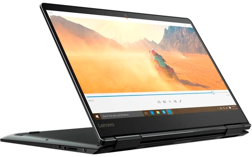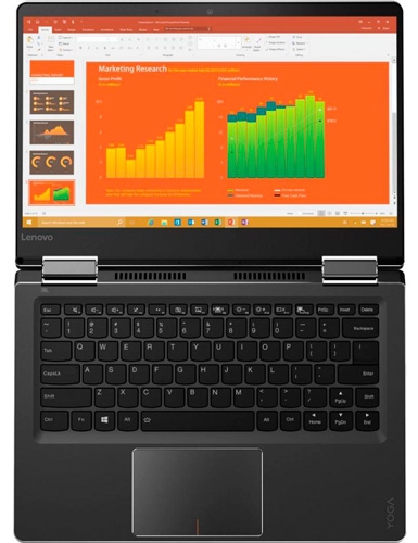 ДизайнLenovo Yoga 710-14 имеет алюминиевый корпус черного цвета (Ebony Black), но модельный ряд также включает и серебристую версию (Platinum Silver). Поверхность крышки – матовая, она не восприимчива к отпечаткам пальцев, но для профилактики или в случае необходимости ее можно протереть влажной хлопчатобумажной тканью. На задней панели есть две надписи: в верхнем левом углу – Yoga, в правом нижнем – Lenovo. Получилось очень символично, и нет абсолютно никакого перегруза по части элементов. Наоборот, внешний вид крышки очень четкий и лаконичный. ![]() Дисплей выполнен в духе Dell XPS 13 – у него узкая рамка, особенно боковые грани. Этот тренд «пришел» в 2015 году и, надеемся, просуществует еще долгое время. На верхней грани рамки находится объектив веб-камеры, на нижней – еще один логотип бренда. Подладонная поверхность также металлическая, немаркая. Большую ее часть занимает клавиатура, тачпад тоже не обделен вниманием – он довольно крупный и, что самое важное – функциональный. ![]() Надо отдать должное производителю – трансформер получился крепким и надежным. Его корпус не поддается давлению и скручиванию, даже если прибегать к силе умышленно. Если надавить на крышку, изображение на дисплее не исказится. Переход из одного режима работы в другой (скажем, из ноутбука в планшет) происходит бесшумно и гладко. Кстати, поднять крышку одной рукой не получится, как бы вы не старались. Что касается габаритов устройства, то речь идет о следующих цифрах – 322х223х17 мм, при весе 1.5 кг. Стоит признать, что Lenovo Yoga 710-14 – мобильный, легко транспортируемый девайс, который можно спокойно брать в поездку, на работу, учебу или на прогулку. ![]() Дисплей, звук и веб-камераНоутбук наделен 14-дюймовым экраном с разрешением 1920х1080 пикселей (157 ppi). Он имеет приличный запас яркости – 325 кд/м2, а также хороший коэффициент контрастности – 929:1. Соответствие цветовому стандарту sRGB составляет 90%, AdobeRGB значительно меньше – всего 58%. Вывод напрашивается сам собой: Lenovo Yoga 710-14 не рассчитан на выполнение профессиональных задач (например, обработку фото), и вряд ли калибровка существенно повлияет на ситуацию. Емкостный экран поддерживает 10-пальцевый мультитач, сенсор отзывчивый, и моментально выполняет все команды. ![]() IPS-матрица гарантирует широкие углы обзора, независимо от сценария использования трансформера. Поверхность дисплея глянцевая, и на солнце будет ощутимо бликовать, что не лучшим образом скажется на качестве изображения. Поэтому старайтесь не сидеть с ноутбуком возле окна, а на улице ищите тень. ![]() На днище лэптопа, ближе к его боковым граням, расположены два динамика от JBL. Такое расположение своеобразное, так как в любом положении динамики направлены не на пользователя, а в «пол». А в планшетном режиме они и вовсе будут прикрыты клавиатурной частью. Таким образом, на выходе имеем приглушенный звук, у которого, справедливости ради, весьма неплохое качество: отсутствие хрипов на максимальной громкости и сбалансированные частоты. Разумеется, не обошлось и без веб-камеры, ее разрешение – 1 Мп. Вебка подходит для видеообщения, и не более. Снимки, конечно, с ее помощью можно сделать, но качество у них будет ниже среднего уровня. Клавиатура и тачпадНоутбук наделен клавиатурой островного типа. Она немного утоплена вглубь относительно рабочей зоны – это нужно для того что клавиатурный блок и экран не со