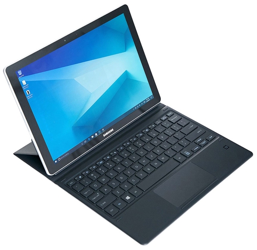 ДизайнПо всей видимости, ставку на внешний вид производитель не делал – планшет выглядит вполне обычно. Задняя панель изготовлена из цельного куска алюминия и имеет слегка шершавую на ощупь поверхность. За счет шероховатости устройство не норовит выскользнуть из рук, вдобавок на такой текстуре меньше бросаются в глаза отпечатки пальцев и пыль. Посередине панели находится логотип компании, чуть выше – объектив основной камеры. В самом верху заметна пластиковая вставка, которая скрывает антенны. ![]() Планшет выпускается в серебристом и черном цвете. Лицевая часть полностью прикрыта стеклом. Экран окружен довольно толстыми, по современным меркам, рамками. На верхней грани находится фронтальная камера, напротив нее – еще один логотип бренда, небольшого размера. Интерфейсы расположены довольно равномерно, за исключением нижнего торца – он пустует. ![]() Док-клавиатура, которая идет в комплекте с планшетом, присоединяется через магнитный коннектор. Конструкция устойчива на твердой плоской поверхности, но чтобы удержать ее на коленях придется серьезно лавировать – это откровенно неудобно. Дисплей весит 754 г, его удобно держать в руках. Стоит признать, что качество сборки новинки отменное: детали на своих местах, нет зазоров, люфтов или прогибов. ![]() Дисплей, звук, веб-камера12-дюймовый экран планшета имеет высокое разрешение 2160х1440 пикселей, при этом плотность на дюйм составляет 216 ppi. Дисплей характеризуется высокой яркостью и контрастностью, также практически эталонным является уровень черного. Соответствие цветовому охвату AdobeRGB достигает 99%, что чрезвычайно важно для художников и дизайнеров. ![]() Матрица Super AMOLED – это огромный бонус, ведь она обеспечивает насыщенные, сочные и реалистичные цвета изображения. Углы обзора широкие и не инвертируются ни под каким ракурсом. Экран глянцевый, но за счет хорошего запаса яркости его содержимое остается читабельным даже под прямыми солнечными лучами. Сенсор дисплея срабатывает моментально и поддерживает до 10 одновременных касаний. ![]() В комплект поставки входит стилус S Pen с наконечником диаметром 0.7 мм. Цифровое перо поддерживает до 4096 уровней нажатия и существенно расширяет границы использования планшета. ![]() Акустическая сторона девайса также не подкачала. Басов хоть и не хватает, зато на максимальной громкости звук не искажается. В целом, для просмотра фильмов или прослушивания музыки фоном качества звучания вполне достаточно. Разрешение фронтальной камеры составляет 5 Мп. С ее помощью можно сделать селфи или поболтать по Skype. Для фотографирования больше подходит тыловая камера, разрешение которой – 13 Мп. Она обладает автофокусом и делает неплохие снимки. Правда, в сумерках они становятся менее четкими и резкими. Клавиатура и тачпадКлавиатура, которая одновременно является и обложкой, одним движением присоединяется к планшету. В работе обложка трансформируется в подставку, а та, в свою очередь, позволяет выставить три положения экрана. В отдельном питании клавиатура не нуждается. Клавиатурный блок островного типа, очень напоминает стандартную клавиатуру ноутбука до 15.6 дюймов. Цифровой блок отсутствует, стрелки размещены очень компактно, попадать по ним довольно сложно. Кнопки клавиатуры имеют квадратную форму и находятся друг от друга на расстоянии, достаточном для комфорт