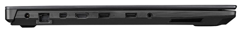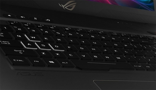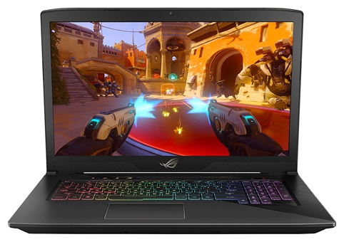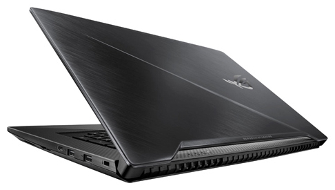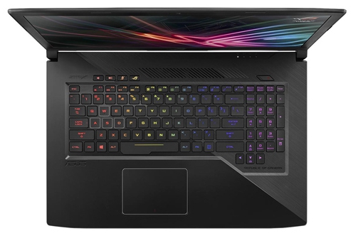 ДизайнНоутбук с виду монолитный, солидный, немного сдержанный. Крышка устройства поделена на зоны наклонной линией. Логотип производителя на внешней поверхности отсутствует, есть лишь эмблема ROG. Однообразие сдержанного цвета разбавляет привлекательная текстура. Обращает внимание гладкая матовая поверхность, на ней если и остаются отпечатки пальцев, то быстро удаляются тряпочкой. Удивительно, что лого ASUS фигурирует только в рабочей зоне, сразу под клавиатурой. Кстати, интерьер особо не отличается от внешней поверхности в плане оформления, какие-либо яркие акценты отсутствуют, во всяком случае пока ноутбук выключен. При включении девайса загорается красным геймерская эмблема. ![]() Днище ноутбука сделано текстурным, панель, открывающая доступ к внутренним компонентам, выполнена оригинально по форме. В нижней части предусмотрены опорные ножки, логотип игровой серии. Здесь не слишком много решеток, что нехарактерно для такого ноутбука. Вентиляционные отверстия располагаются сзади, их несложно не заметить ввиду размеров. ![]() Крышка и основание сделаны из алюминия и пластика соответственно, соединяются двумя небольшими петлями. С виду шарниры кажутся не слишком надежными, что не подтверждается в эксплуатации. Дисплей плотно удерживается, не раскачивается. Размеры корпуса составляют 415x280x24 мм, вес – 2.9 кг, для 17-дюймового ноутбука параметры приемлемые, можно не только использовать ASUS ROG Strix GL703VD стационарно, но и иногда по необходимости брать с собой. ![]() Дисплей, звук, веб-камераУчитывая, что лэптоп будет использоваться в основном для игр и других развлечений, производитель поставил в модель 17.3-дюймовый матовый дисплей с разрешением 1920х1080 пикселей. Качественная IPS-матрица передает сочные цвета, обеспечивает широкие углы обзора до 178 градусов. Изображение на экране детализированное, что оптимально для игрового процесса. ![]() Веб-камера ноутбука имеет HD-разрешение. Она отлично справляется с видеосвязью, с ее помощью можно пообщаться с коллегами, друзьями, знакомыми по Skype. ![]() В играх очень важно звуковое сопровождение. Этим занимаются два стереодинамика, которые выводят звучание с присущими средними и высокими частотами. Басы есть, но прослушиваются не так хорошо, как хотелось бы, разве что при подключении наушников. Громкости акустики достаточно, также для звучания характерна глубина. В общем, звуковые эффекты помогут геймеру проникнуться происходящим в игре. Клавиатура и тачпадЗона, отведенная под островную мембранную клавиатуру, довольно просторная, места хватило для нампада. Все кнопки имеют средний ход и четкую маркировку на поверхности, они не ущемлены в размерах и едва вогнуты. По клавишам удобно попадать пальцем, не совершая ошибочных нажатий. ![]() Игровые кнопки выделены, они не останутся без внимания заядлого геймера. Большой плюс и в отношении подсветки, зональность и цвет которой можно настраивать. Кстати, дизайнеры отошли от традиционного исполнения клавиатурной области и конкретно клавиши пробела. Стрелочный блок разместили ниже, чем последний ряд кнопок, [Space] расширена к левой части, что комфортно для нажатия. ![]() Группа клавиш находится и за пределами клавиатуры. В верхнем правом углу это кнопка включения, тогда как в левом – регулировка звука, запуск ASUS Gaming Center (на поверхности нанесена знакомая эмблема ROG). ![