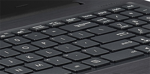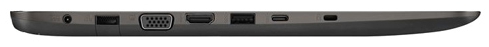 ДизайнДля корпуса ноутбука выбрана сдержанная темно-коричневая расцветка. В интерьере она сочетается с черным (клавиши), вместе два таких цвета не особо оживляют дизайн. ASUS K556UQ выглядит строго, деловито, как и большинство девайсов, предназначенных для работы. ![]() Крышка и другие части ноутбука сделаны из пластика. Глянец на внешней стороне красиво смотрится, но добавляет проблем сильной маркостью, т.к. на поверхности постоянно остаются следы пальцев. В зоне подладонной площадки присутствует текстура, она служит своеобразным акцентом в оформлении. Логотип производителя можно увидеть в двух местах: на крышке и рамке дисплея. ![]() Размеры ноутбука 382x258x26 мм подойдут не только для стационарного использования. С учетом веса 2.4 кг устройство можно брать в командировки, на учебу, в общем, беспроблемно возить с собой. Корпус девайса практичный, выдержит ежедневные поездки. Правда, некоторые панели в лэптопе недостаточно жесткие, поэтому немного прогибаются. В то же время детали скомпонованы отлично, без зазоров и люфта. Дисплей, звук, веб-камера15.6-дюймовый ноутбук оснащается простой бюджетной матрицей TN, которая не в состоянии обеспечить широкую обзорность. Не впечатляет и разрешение 1366х768 пикселей с плотностью 100 ppi, которое сейчас уже можно считать устаревшим. Яркости дисплея хватает на работу в помещении, к сожалению, на улице к изображению придется присматриваться. Контрастность невысокая. Спасает от бликов и отражений матовая поверхность. Если учитывать, что ноутбук нацелен на офисные и другие ежедневные задачи, то с такими характеристиками вполне можно мириться. ![]() Веб-камера лэптопа с разрешением 0.3 Мп тоже не обладает сверхспособностями. Конечно, с ее помощью легко общаться по Skype, но не более того. Снимки недостаточно четкие, видны отдельные пиксели. ![]() Два стереодинамика расположены на днище, неплохо справляются с задачами, дополнительно в комплектации предусмотрена поддержка фирменной технологии SonicMaster. Через динамики выходит четкий звук, не искажающийся на максимуме. В основном здесь слышны высокие частоты, поэтому при прослушивании музыки, просмотре видео или играх лучше подключать наушники. Из-за местонахождения громкость частично теряется. Клавиатура и тачпадРабочая зона в ноутбуке просторная, что положительно сказалось на эргономичности клавиатурного блока. Кнопки с плоской поверхностью прекрасно откликаются на нажатия, размеры удобны даже для крупных пальцев, островное расположение и четкая отдача позволяют печатать с минимумом ошибок. ![]() Не требует привыкания стандартная раскладка и полноразмерный стрелочный блок. Для быстрого ввода чисел предусмотрен нампад. Кнопка включения вынесена отдельно, располагается в левом верхнем углу над клавиатурой. Ее не перепутаешь с другими клавишами и случайно не нажмешь во время набора текста. ![]() Тачпад средних размеров и с матовой шероховатой поверхностью идеально подходит для позиционирования. Благодаря отличной отзывчивости, сенсорную зону оптимально использовать для выполнения скроллинга, масштабирования. Мышиные кнопки спрятаны под тачпадом, нажатие в нижней части манипулятора не тугое, команды выполняются корректно. Зону правой и левой клавиш разделяет специальная маркированная полоса. ![]() ПроизводительностьВ комплектации ASUS K556UQ-XO431T 90NB0BH1-M05410 предустан