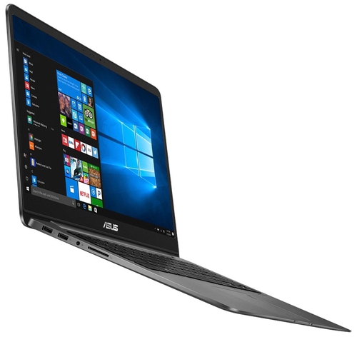 ДизайнКонцентрические круги – визитная карточка линейки ZenBook, и крышка ноутбука ASUS UX530UX не стала исключением. Ультрабук поставляется в двух цветах: насыщенном синем (Royal Blue) и сером (Quartz Gray). Крышка алюминиевая, в ее центре находится логотип бренда. В силу того, что поверхность глянцевая, она еще и маркая: отпечатки пальцев и пыль становятся верными спутниками устройства. Вдобавок при неаккуратном обращении верхняя панель быстро затрется и покроется царапинами. ![]() Верх и низ девайса соединены продолговатым шарниром. Крышка податлива, однако поднять ее одной рукой не получится – следом потянется и нижняя часть устройства. Боковые рамки дисплея тонкие (7.5 мм), остальные – чуть шире. Подладонная поверхность просторная, клавиатура – удобная. На днище лэптопа есть четыре резиновые ножки, которые крепко сцепляются с поверхностью. ![]() Качество сборки ультрабука хорошее: нет скрипов, люфтов, ничего не трещит и не прогибается. Порадовали многочисленные отверстия для выхода воздуха: в прорези шарнира и еще несколько – на нижней грани. Производитель гордится компактностью ASUS ZenBook UX530UX и не зря: размеры устройства составляют 360х246х17 мм, а вес равен 1.6 кг. Таким образом, лэптоп уместен в командировках и путешествиях. Дисплей, звук и веб-камера15.6-дюймовый экран имеет Full HD-разрешение и соотношение сторон 16:9. У дисплея хороший запас яркости и отличная цветопередача. Картинка на экране выглядит насыщенной, сочной, реалистичной и чуть более теплой, чем есть на самом деле. Соответствие цветовому пространству sRGB составляет 100%, NTSC – 72%. Это означает, что дисплей подойдет для профессиональной обработки фотографий. ![]() Матрица IPS обеспечивает широкие углы обзора, следовательно, независимо от ракурса, цвета не инвертируются. Поверхность экрана матовая, что позволяет работать на улице или возле окна, не опасаясь бликов. Благодаря фирменной утилите Splendid пользователь имеет возможность настроить цветопередачу, откорректировать режимы, снизить уровень синего цвета на 30%, чтобы глаза меньше уставали. ![]() На днище находятся два динамика Harman/Kardon. Звук на выходе громкий, на максимуме не искажается. Звучание сбалансированное, акустических возможностей динамиков хватит для видеоконференций, воспроизведения аудио/видео. Веб-камера с HD-разрешением подходит для видеообщения. В паре с ней работают несколько микрофонов, которые плохо справляются со своей работой в шумном месте. Поэтому если вы в комнате не одни, рекомендуем подключить гарнитуру. Клавиатура и тачпадПолноразмерная клавиатура в виде единого блока выполнена по островному принципу, с неплотной компоновкой кнопок. На небольших черных клавишах контрастно смотрится белая маркировка. Цифровой блок отсутствует, поэтому по бокам клавиатурного блока имеется много свободного пространства. Трехуровневая подсветка – хорошая новость для пользователей, предпочитающих работать ночью или при недостаточном освещении. ![]() У кнопок короткий ход – 1.4 мм, к тому же они тихо срабатывают. Расположение клавиш обычное, под него не придется подстраиваться или переучиваться. Кнопка [Enter] однорядная, под ней находится продолговатая [Shift]. Стрелочный блок маленький, но для современных ультрабуков это уже норма. По правому краю – полоса клавиш для навигации. Кнопка включения ноутбука находится над клавиатурой, в правом 