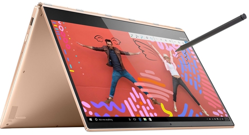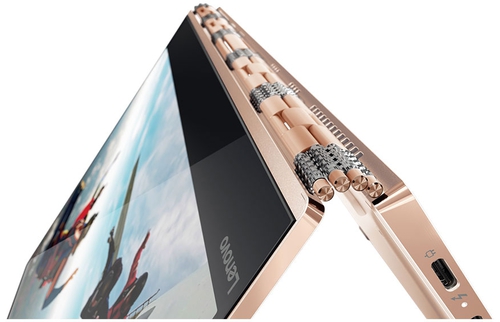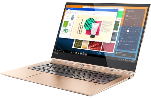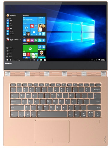 ДизайнЛэптоп заключен в легкий и прочный алюминиевый корпус. В модельном ряде предусмотрено три цветовые вариации: серебристая (Platinum Silver), бронзовая (Bronze) и медная (Copper). Расцветки нетривиальные и стильные, остановиться на одной сложно. Вне зависимости от цвета поверхности ноутбука немаркие – пыль и отпечатки пальцев на них практически не видны. Корпус довольно жесткий, при смене режимов не издает скрипучих звуков. ![]() Шарнир уже не в первый раз встречается в линейке Yoga: он напоминает браслет часов, который надежно фиксирует девайс в любом положении. Под шарнирным механизмом находится антенна Wi-Fi и отверстия для вентиляции, которые равномерно охлаждают поверхность устройства. ![]() Сценариев использования четыре: планшет, ноутбук, презентация и консоль. Из них только режим «ноутбук» предполагает активную клавиатуру, в остальных – она автоматически отключается. Пару слов о дисплее: его диагональ составляет 13.9 дюймов, но за счет тонких рамок (всего 5 мм) кажется, что больше. Широкой осталась только нижняя грань, на ней находится логотип бренда. Веб-камера вынесена на верхнюю рамку. Клавиатура крупная, рабочая поверхность – просторная. Недалеко от тачпада расположен дактилоскопический сканер. ![]() Качество сборки Lenovo Yoga 920 превосходное: нет люфтов, зазоров, крышка и клавиатура хорошо сопротивляются давлению. Девайс компактный и мобильный, его размеры – 323х224х14 мм, вес равен 1.37 кг. Дисплей, звук и веб-камера13.9-дюймовый экран ноутбука, защищенный стеклом, оснащен панелью Full HD с плотностью пикселей 158 ppi. Максимальная яркость составляет 300 кд/м2, коэффициент контрастности равен 677:1 – это средние показатели, в идеале хотелось бы увидеть более высокие цифры. Соответствие цветовому пространству sRGB и AdobeRGB составляет 92% и 64%, что делает трансформер пригодным для полупрофессиональных задач. ![]() Благодаря технологии IPS углы обзора дисплея широкие (до 178 градусов) и вне зависимости от ракурса цвета на картинке не инвертируются. Поверхность экрана глянцевая, на солнце она сильно бликует, поэтому лучше работать в тени. Дисплей поддерживает 10-пальцевые нажатия. Он оперативно реагирует на команды, даже по углам и краям. В комплект поставки входит стилус, распознающий до 4096 уровней давления. Цифровое перо одинаково полезно для заметок или рисования. Оно поставляется с держателем, который подключается к порту USB 3.0 с правой стороны. Для работы стилуса требуются приложения Wacom Pen и Pen & Ink. ![]() Два динамика JBL находятся на днище, ближе к боковым граням. Они транслируют сбалансированное звучание, без искажений на максимальной громкости. Веб-камера с разрешением 720p подходит для видеообщения. Качество картинки нечеткое и зернистое, тем не менее собеседника видно и слышно. Клавиатура и тачпадПолноразмерная клавиатура островного типа имеет плотную компоновку клавиш. Кнопки квадратной формы, нижняя часть в форме улыбки – это классика бренда. Клавиши черного цвета, на них хорошо видна светлая маркировка. Цифровой блок отсутствует. Имеется двухуровневая подсветка для работы ночью или при плохом освещении. ![]() У кнопок короткий ход (1.5 мм), жесткая отдача. Печатать удобно, руки не устают даже после целого рабочего дня.Расположение клавиш стандартное, как и размер. Так, кнопка [Enter] однорядная, обе [Shift] – крупные и продолговатые. Стрелочный блок компактный, однако по 