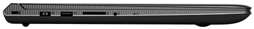 ДизайнНоутбук сконструирован в стандартном 15.6-дюймовом форм-факторе. Габариты лэптопа составляют 384х265х22.7 мм, вес – 2.3 кг, при этом никаких вариантов трансформации не предложено – классический лэптоп черного цвета. Кстати, в продаже есть еще модификация в белой расцветке, выглядит такой Lenovo IdeaPad 700-15 весьма свежо и достаточно необычно. ![]() Но вернемся к нашему варианту. Матовый пластик здесь использован повсеместно, и общее восприятие разбавляет лишь необычной формы шарнир – он один и занимает большую половину площади механизма крепления. Расположена петля четко по центру, тогда как боковые зоны являются продолжением нижней панели корпуса и функциональной нагрузки не несут. В итоге, крышка хорошо закреплена, и открыть ноутбук одной рукой можно довольно легко. Да и в целом качество сборки приличное, мы остались довольны. ![]() Если бы не темный тон цвета, проблем с отпечатками пальцев в Lenovo IdeaPad 700-15 не было вообще. А так, они собираются не слишком активно и удаляются без проблем сухой тряпочкой. И делать это желательно регулярно, так как поверхность корпуса, за исключением миниатюрного логотипа Lenovo, совершенно пустая, и «пальчики» будут бросаться в глаза. Кстати, такой же минимализм прослеживается и в строении днища – здесь находятся только четыре решетки вентиляционных отверстий да три опорные ножки (две маленькие и одна – задняя – длинная). ![]() Дисплей, звук, веб-камераДанный ноутбук поставляется с 15.6-дюймовым экраном, заключенным в довольно массивную рамку из пластика. Панель от LG изготовлена по технологии AH-IPS, что позволяет рассчитывать на улучшенные показатели контрастности и минимизированное время отклика. Углы обзора превосходные, картинка прекрасно видна при любом развороте дисплея, без инверсии цветов. Максимальная яркость сравнительно невысока – 212 кд/м2, что в совокупности с показателями контрастности 552:1 ведет к весьма проблематичному использованию ноутбука на улице при ярком солнечном освещении. Но, в целом, эксплуатация ноутбука очень комфортна и качественна. ![]() Два динамика JBL спрятаны в корпусе по бокам от шарнира. Они направлены фронтально на пользователя, а потому звук не приглушается, если лэптоп открыт. Сама по себе акустика насыщенна и глубока, громкости достаточно для помещения среднего размера. ![]() Веб-камера с разрешением 1 Мп снимает очень хорошо, изображение получается четким и светлым, даже в сумерках. С помощью вебки всегда можно пообщаться в Skype. ![]() Клавиатура и тачпадДля оформления островной клавиатуры использовали пластик, внешне похожий на алюминий. Он очень прочный и совершенно не прогибается под давлением, что очень удобно для быстрого и длительного печатания. Здесь предусмотрена светодиодная двухуровневая подсветка. Она не слишком яркая, но достаточная для видимости клавиш в темное время суток. Сами кнопки имеют короткий ход – это не слишком комфортно для работы и придется привыкать. Зато таким образом удалось минимизировать шум при печатании. ![]() Ноутбук оснащен тачпадом, прекрасно адаптированным под эксплуатацию. Сенсорный манипулятор притоплен в корпус, имеет четкую окантовку и отличную чувствительность. Поверхность зоны с тактильно приятна и идеально сцепляется с пальцем, обеспечивая точную и плавную навигацию. Мышиные клавиши спрятаны под панель тачпада, визуально они выделе