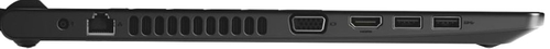 Слева – два порта USB 3.0, видеовыходы HDMI и VGA, сетевой разъем RJ-45 и гнездо для подзарядки.