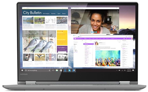 ДизайнУ ноутбука пластиковая крышка и алюминиевая рабочая зона. Всего в линейке предусмотрено три цвета: черный (Onyx Black), серый (Mineral Grey) и светло-голубой (Liquid Blue). Независимо от расцветки, устройство выглядит аккуратно, отпечатки пальцев и пыль на нем едва заметны. На крышке имеется всего один элемент – надпись «Yoga» в верхнем левом углу. Дисплей окружен тонкими рамками, за исключением нижней – она значительно толще остальных. Интерфейсы равномерно распределены по боковым граням. ![]() Верх и низ корпуса соединяют две небольшие петли. Они довольно тугие, так что одной рукой ноутбук не открыть. Плюс в том, что шарнирный механизм удерживает экран надежно, так что конструкция не заваливается вперед или назад. Как мы упоминали, есть четыре сценария использования трансформера: ноутбук, планшет, презентация и консоль. Два последних режима пригодятся для проведения презентаций, слайд-шоу, а также для игр. ![]() Ноутбук получился легким (1.6 кг) и компактным (328х229х18 мм). Но все относительно – для планшетного режима конструкция будет громоздкой, и долго удерживать более чем полуторакилограммовое устройство даже двумя руками будет сложно. Качество сборки девайса отличное: никаких скрипов, люфтов, прогибаний. Дисплей, звук и веб-камера14-дюймовый экран обладает разрешением Full HD и плотностью пикселей 157 ppi. С яркостью 250 кд/м2 проблем нет – в помещении содержимое дисплея хорошо считывается. Возле окна или на улице, особенно в солнечную погоду, читабельность хуже. Глянцевая поверхность усугубляет ситуацию, провоцируя появление бликов. ![]() Цветопередача естественная, экран транслирует сочную и реалистичную картинку. Благодаря матрице IPS углы обзора стабильно хорошие, а цвета не инвертируются. Емкостный дисплей поддерживает 10-пальцевый мультитач, быстро реагирует на команды. Помимо касаний пальцами, экран реагирует на стилус Active Pen, который идет в комплекте (опционально). Используя цифровое перо, можно делать заметки, пометки на карте, писать комментарии, рисовать или создавать наброски. ![]() Динамики Harman с технологией Dolby Audio звучат сбалансированно и слаженно. Но за счет того, что они находятся на днище, звук кажется приглушенным. Тем не менее акустических возможностей хватит, чтобы заполнить комнату средних размеров. Дополнительно к ноутбуку можно подключить наушники или внешнюю колонку. Разрешение веб-камеры составляет 1 Мп. Качественных фотографий она не сделает, но хорошо подходит для видеообщения, скажем, по Skype. Клавиатура и тачпадПолноразмерная клавиатура сделана по островному принципу, а значит, вокруг каждой кнопки предусмотрено свободное пространство. Компоновка клавиш неплотная, поэтому риск ошибочного нажатия невелик. Кнопки квадратные, внизу закругленные, маркировка белая. Не обошлось без подсветки, поэтому печатать можно в условиях плохого освещения или его отсутствия. Клавиши нажимаются без усилий, с негромким щелчком. У них средний ход и отличная отдача. Раскладка стандартная, не требует привыкания. Кнопка [Enter] однорядная, обе [Shift] – крупные, так же, как и [Tab], [CapsLock]. Набирать текст удобно, руки не устают даже после целого рабочего дня. Еще один плюс – всегда прохладная рабочая зона. ![]() Гладкий тачпад крупного размера имеет четкие границы, поэтому его легко найти вслепую. Манипулятор оперативно выполняет команды и поддерживает ста