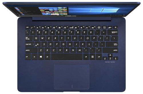 ДизайнМодельный ряд ноутбука включает четыре цвета: серый кварц (Quartz Gray), голубой (Royal Blue), мерцающее золото (Shimmer Gold) и розовое золото (Rose Gold). Все расцветки объединяет алюминиевая крышка с концентрическими кругами – фирменным элементом линейки ZenBook. Поверхность этой панели глянцевая – выглядит роскошно, однако активно собирает отпечатки пальцев. К тому же есть подозрение, что на такой поверхности будут заметны даже мелкие царапины, поэтому транспортировать ноутбук лучше всего в защитном чехле. В центре крышки расположен объемный логотип компании ASUS. ![]() Шарнирная петля лэптопа довольно тугая, поэтому одной рукой крышку не поднять. Вместе с тем, механизм надежно удерживает экран в заданном положении, не допускает расшатывания вперед или назад. Дисплей окружен тонкими боковыми рамками (7.18 мм), верхняя и нижняя чуть толще, так как на них вынесена веб-камера и еще один логотип бренда. Клавиатурный блок довольно крупный, то же самое можно сказать и про тачпад. Интерфейсы равномерно распределены по боковым граням устройства. ![]() Качество сборки ASUS ZenBook UX3400UA на высоте: детали подогнаны идеально, все углы гладкие и ровные, корпус не прогибается. Вес конструкции составляет всего 1.25 кг, а размеры – 324х225х16 мм – ноутбук компактный и легкий, а значит, не займет много места в сумке. Дисплей, звук и веб-камера14-дюймовый экран имеет разрешение Full HD. В помещении можно установить 50% яркости дисплея – этого хватит для комфортной работы. В солнечную погоду возле окна или на улице содержимое экрана остается читабельным, но такие условия требуют максимального уровня яркости. У дисплея матовое покрытие, которое защищает от солнечных бликов, но и «съедает» сочность и насыщенность картинки. ![]() Естественная цветопередача, глубокие реалистичные цвета, технология Eye Care для снижения интенсивности синего цвета – это то, что делает ежедневную работу с экраном очень комфортной. Матрица IPS обеспечивает широкие углы обзора (до 178 градусов): независимо от ракурса изображение остается четким, а цвета не искажаются. Два динамика с технологией SonicMaster транслируют сбалансированный громкий звук. На максимуме акустика не хрипит и вообще не искажается. Но совершенству нет предела, поэтому при необходимости рекомендуем подключить внешние колонки или наушники. Веб-камера формата HD подходит для видеоразговоров по Skype. Она, конечно, и фотографирует, но снимки получаются нерезкими и тусклыми. Клавиатура и тачпадРабочая зона представляет собой целостную панель с прорезями для клавиатурных кнопок. Клавиатура полноразмерная, островного типа, клавиши черные, квадратные, с белой маркировкой. Производителем предусмотрена подсветка, поэтому безошибочно набирать текст получится даже в условиях плохого освещения. ![]() Ход клавиш средний (1.4 мм), обратная связь хорошая, кнопки тактильно приятные. У них стандартная раскладка, которая не отличается от большинства других моделей ноутбуков. Часто используемые клавиши крупные и продолговатые, по ним легко попасть. А вот стрелки миниатюрные, но за счет того, что они находятся в небольшом отдалении от основного блока, риск зацепить близлежащую кнопку минимален. Клавиша включения ноутбука расположена в правом верхнем углу клавиатуры, рядом с [Delete] – не самое удачное соседство, на наш взгляд. У тачпада стеклянная поверхность, благодар
