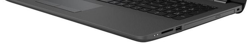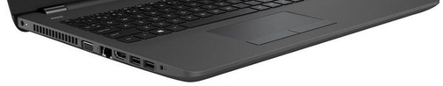 В HP 255 G6 можно найти все необходимое по части портов. На левой стороне находятся два USB 3.0, комбинированный аудио, HDMI, RJ-45, VGA и гнездо для зарядного устройства. Справа расположены: заглушка для оптического привода (предусмотрен в других моделях), кардридер SD, USB 2.0 и отверстие для замка Кенсингтона.