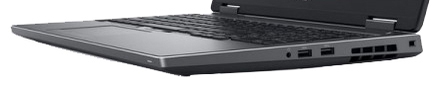 В Dell Precision 7530 предусмотрено более чем достаточное количество портов и разъемов, они есть и сзади корпуса, и по бокам. Так, слева находятся два USB Type-C/ Thunderbolt 3, кардридер SD, слот для смарт-карт, справа – два USB 3.0 с поддержкой PowerShare, комбинированный аудио, гнездо для замка Кенсингтона, сзади можно найти RJ-45, HDMI, Mini DisplayPort 1.4 и разъем зарядного устройства.